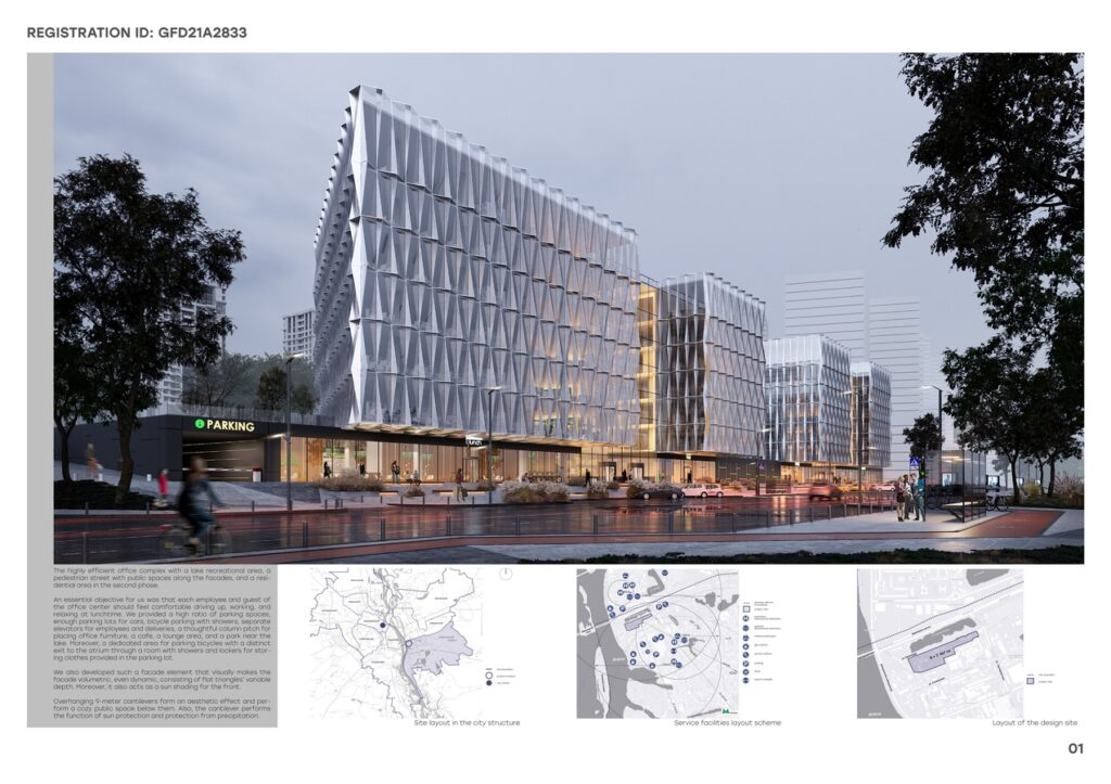 Recuperated ventilation will complement the natural ventilation system; the installation of thermal air and geothermal pumps are also planned. The kindergarten building stands alone, and thanks to its soft forms and color scheme, creates a feeling of comfort, security, and carefree. Moreover, kindergarten mosaic supports the idea of filling and revitalizing the classroom with works of art, art objects are also planned on the school premises. In addition to the central square between the buildings, the school area is formed of streets, passages, and cozy shaded open classes between arches.