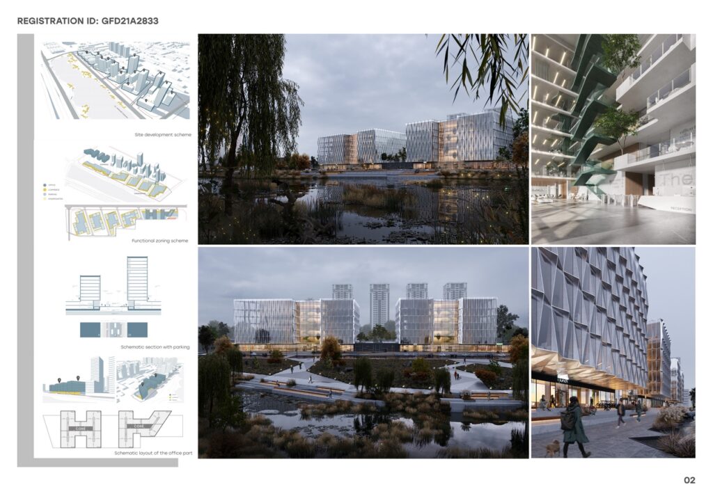 Here is the harmony of diversity from white futurism to rounded glazing tapes, parabolic arches of school buildings, a green “curtain wall” of the school theater, glass waves along the main staircase overlooking the central square, and the warm Iberian sand volume of the kindergarten with mosaic inlay. The town theme, consisting of unique, but united by a common style and composition of buildings, has become decisive in searching for an architectural vision.