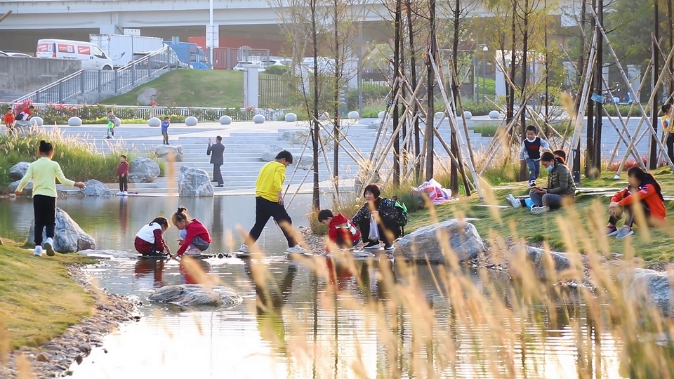 The main consideration in the design is the technological process of water ecological treatment, from the purification of the biochemical sedimentation tank through the undercurrent wetland to the creation of natural streams. Finally, the clear water enters the river. We hope to show this beautiful process to the citizens. You can experience the rocky beaches and streams created by simulating nature.