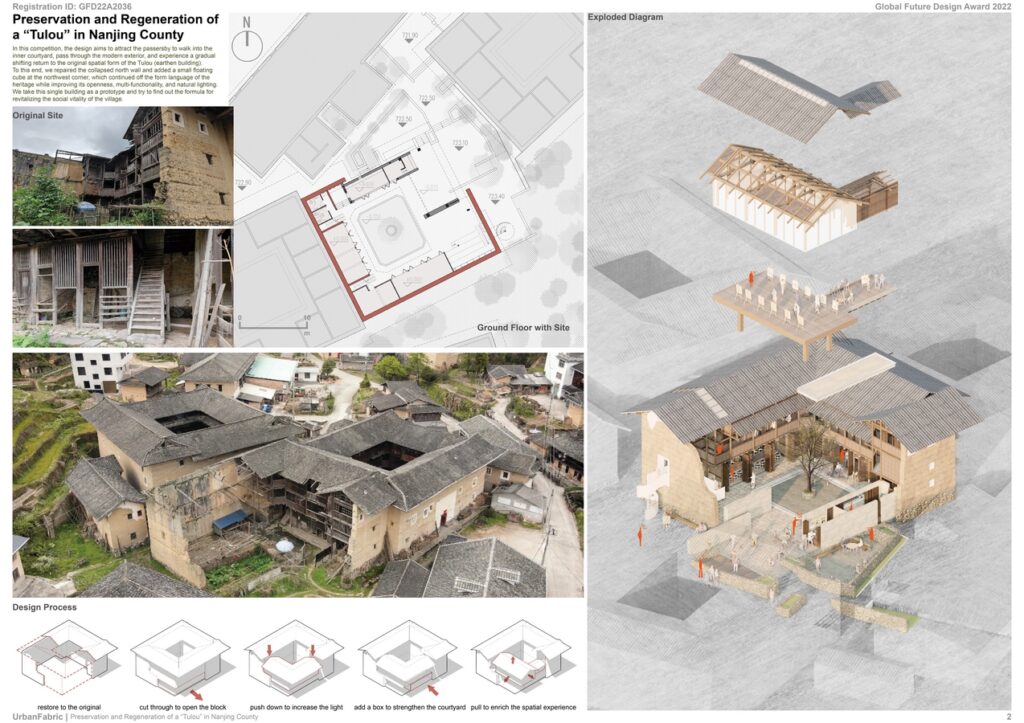The design process provides a general survey of the dilapidated and empty Tulou in rural areas of Nanjing County (note: Nanjing County is not related to the city of Nanjing) and establishes a robust database, creating a new way forward for the protection and development of these historical buildings. At the same time, the design team takes a single building as the initial sample, and tries to find out the formula for revitalizing the residential settlements through this design prototype, so as to drive the economic development and social vitality of the village.