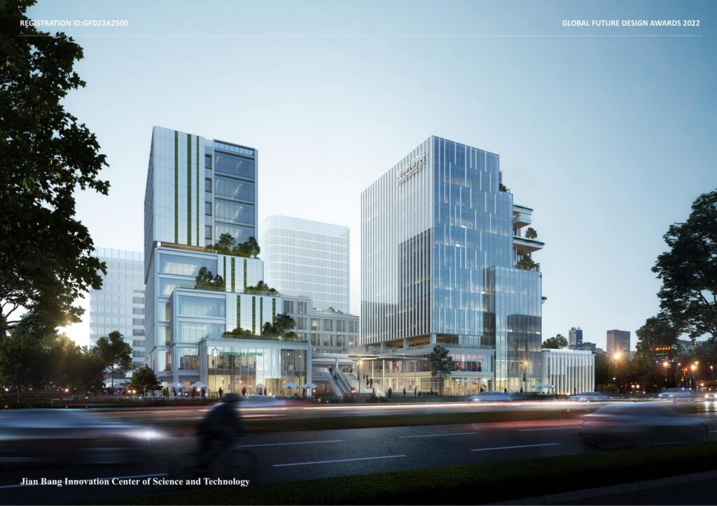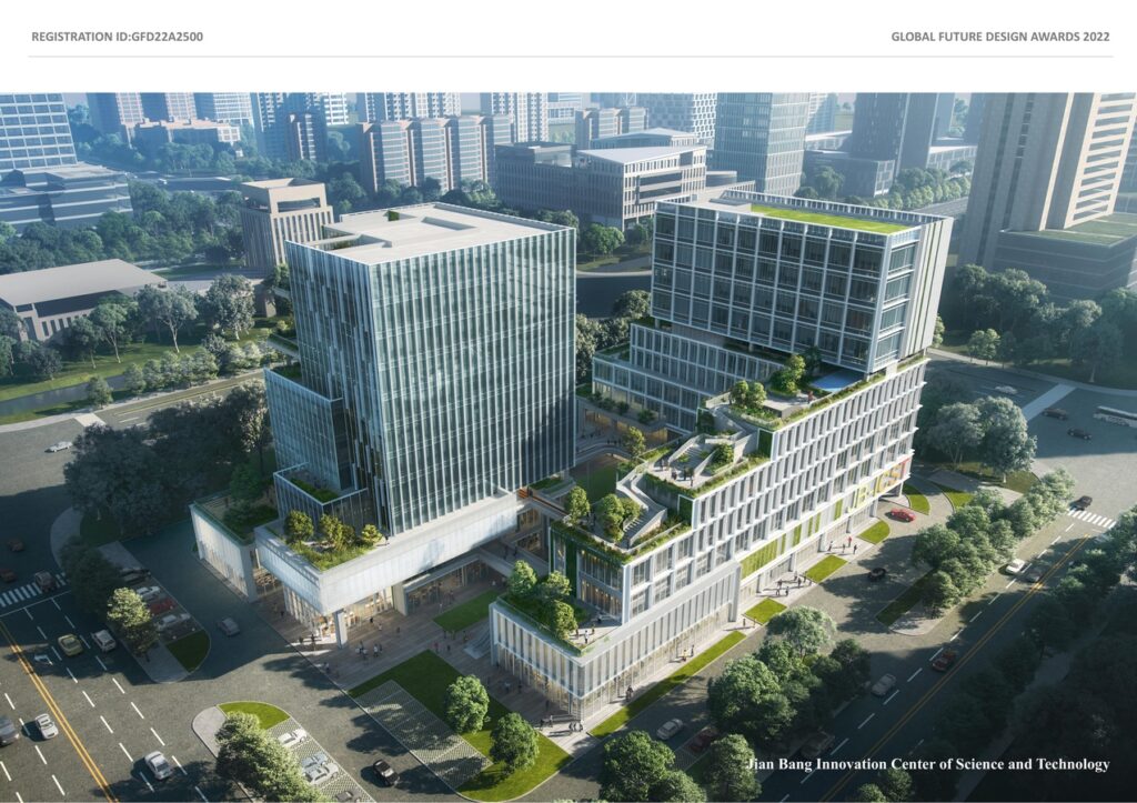Based on the standard layout of modern office buildings, the design takes inspiration from the interlace and overlapping of Chinese pavilions and pagodas, and combines rich local natural greening resources to carry out spatial reorganization. The volume is cut at the corner of the street along the lake interface, moving back and forth layer by layer, to create the sense of interest. In the new spatial order, each office unit has its own relatively independent and non-repetitive outdoor garden; The terraces are connected up and down; the planned route twists and turns so that people can stroll there, just like a delicate “green castle in the sky”.