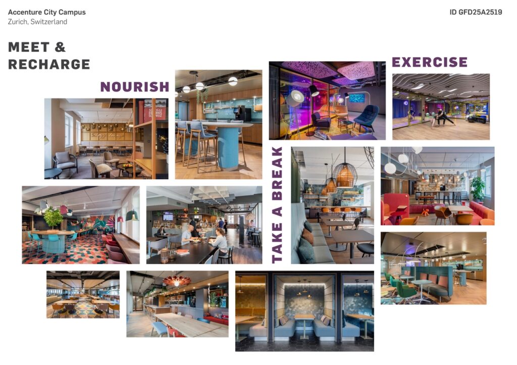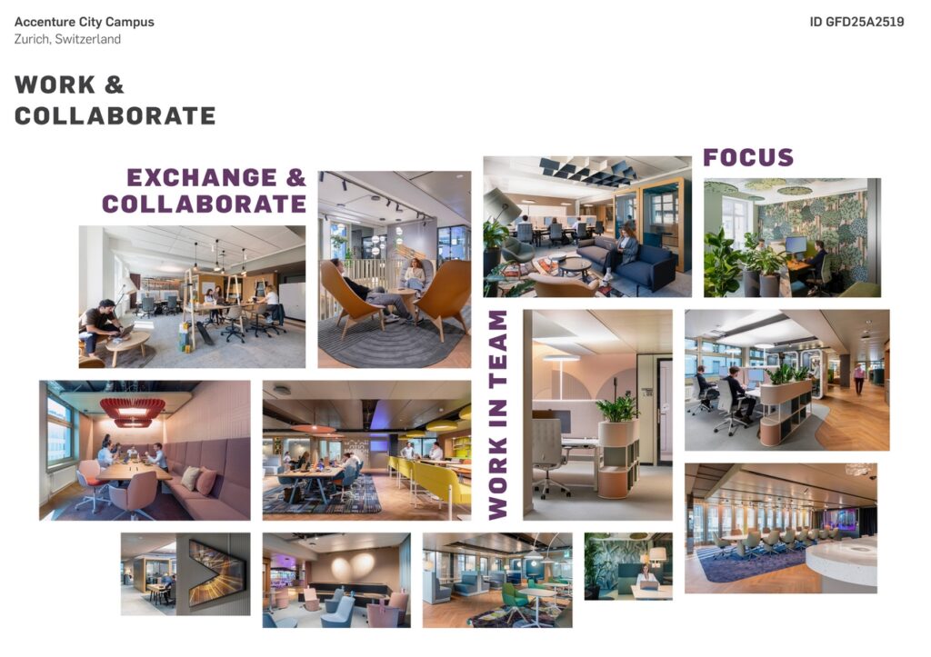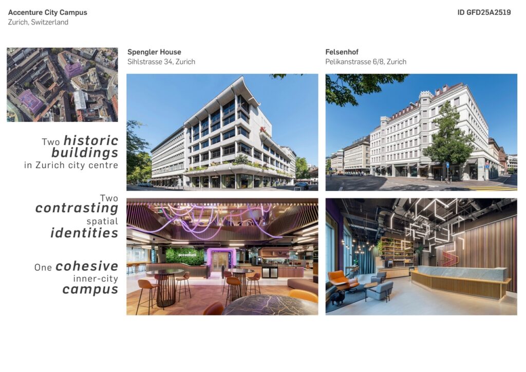 Accenture’s offices in Zurich are more than a workplace – it’s a space that merges global brand identity with local cultural context, establishing an outstanding inner-city campus that reflects the company’s ethos, prioritises well-being, and fosters collaboration.