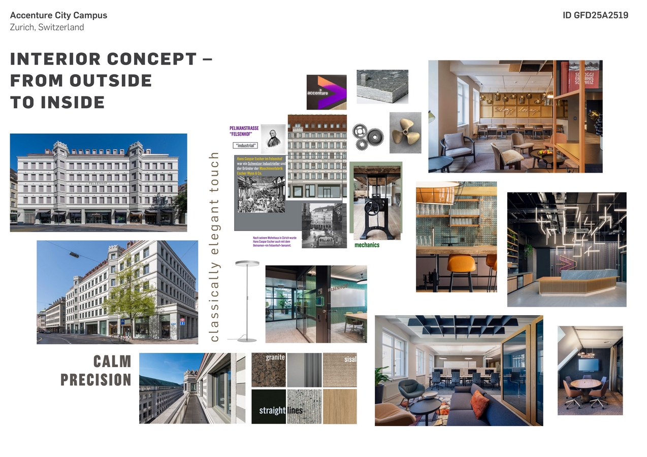 The Accenture city campus, located across two buildings in downtown Zurich, fuses tradition with modernity through respectful spatial transformation, intricate design, and sustainability. The result is a work environment that empowers, surprises, and fosters community.