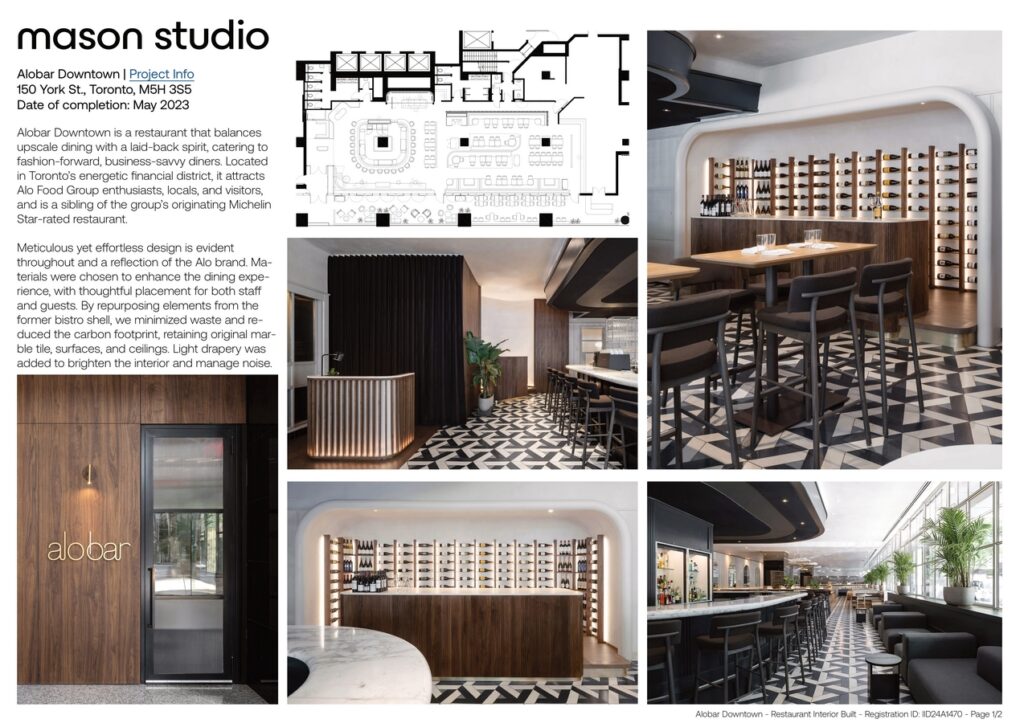 A world-class restaurant in its food, hospitality, & interior design, Alobar Downtown balances an upscale experience with a laid-back spirit. Part of a Michelin Star restaurant group, Alo Food Group, the space is designed for a fashion-forward, business-savvy diner with a keen knowledge of cuisine and libations. In the heart of Toronto’s energetic financial district, Alobar Downtown invites enthusiasts, locals from the area, and visitors to the city looking for a destination spot.