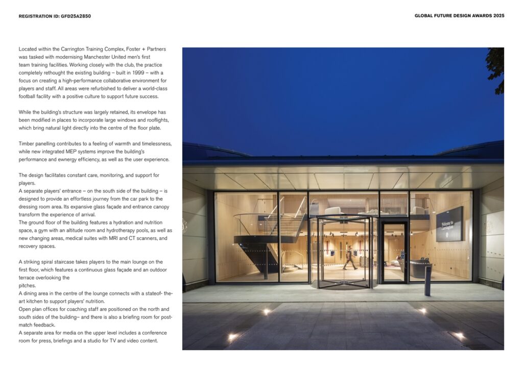 Located within the Carrington Training Complex, Foster + Partners was tasked with modernising Manchester United men’s first team training facilities. Working closely with the club, the practice completely rethought the existing building – built in 1999 – with a focus on creating a high-performance collaborative environment for players and staff. All areas were refurbished to deliver a world-class football facility with a positive culture to support future success.