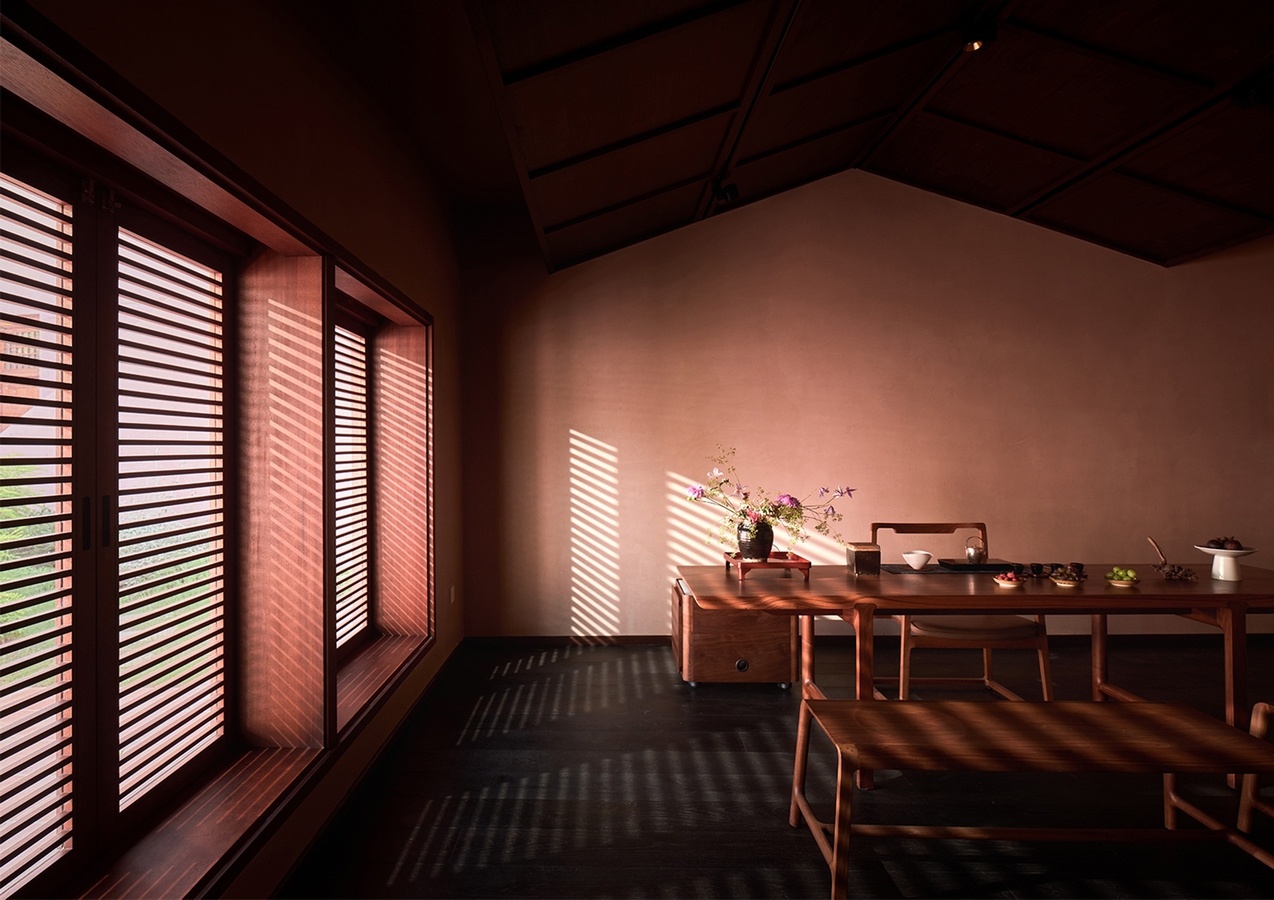 The structure, a lattice of columns and beams, heavily employs natural materials to cultivate an atmosphere of untouched beauty, offering an authentic and unadulterated spatial experience. Ceilings and walls are adorned with nature-inspired artistic finishes, creating a textured dialogue with the interiors. The tea room’s windows and doors, crafted from pineapple grid wood, cast dancing patterns of light and shadow on the floor when kissed by sunlight.