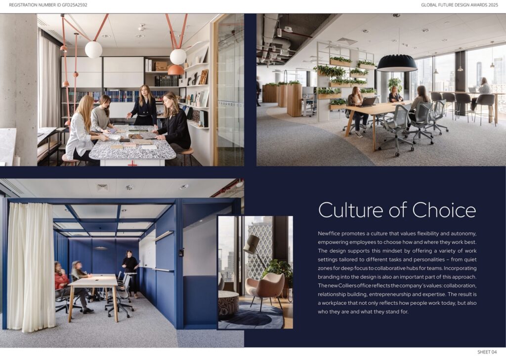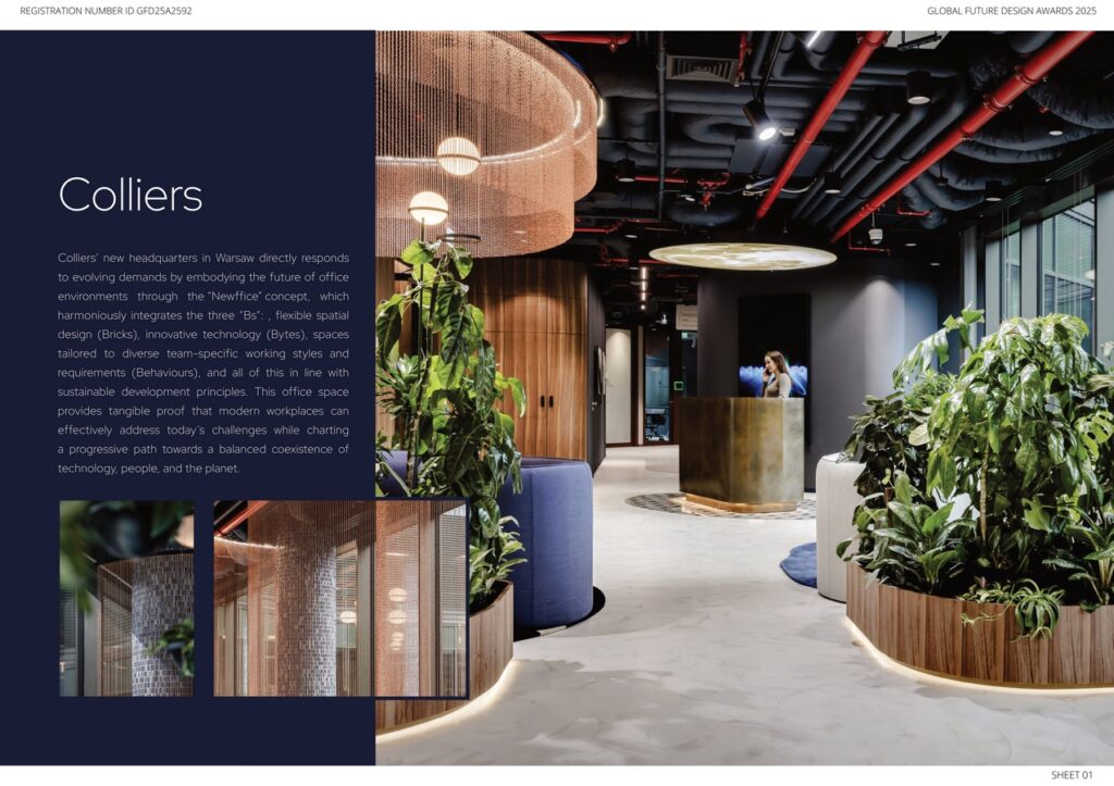 Colliers’ new headquarters in Warsaw directly responds to evolving demands by embodying the future of office environments through the “Newffice” concept, which harmoniously integrates the three “Bs”: , flexible spatial design (Bricks), innovative technology (Bytes), spaces tailored to diverse team-specific working styles and requirements (Behaviours), and all of this in line with sustainable development principles. This office space provides tangible proof that modern workplaces can effectively address today’s challenges while charting a progressive path towards a balanced coexistence of technology, people, and the planet.