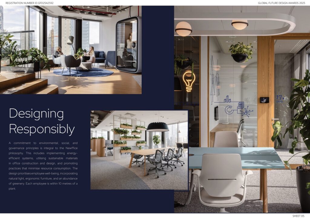 A commitment to environmental, social, and governance principles is integral to the Newffice philosophy. This includes implementing energy-efficient systems, utilising sustainable materials in office construction and design, and promoting practices that minimise resource consumption. The design prioritises employee well-being, incorporating natural light, ergonomic furniture, and an abundance of greenery. Each employee is within 10 metres of a plant.