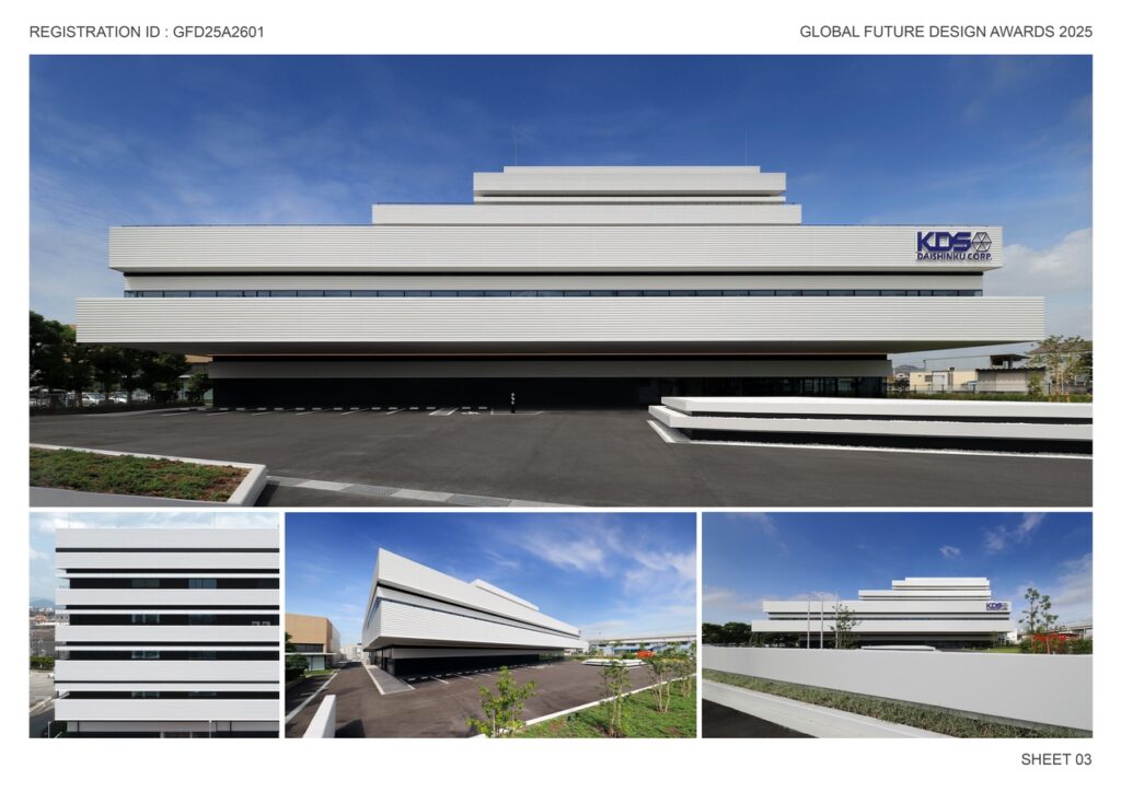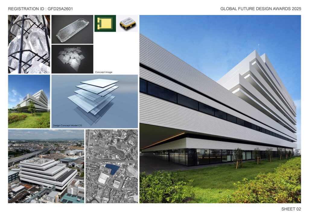 DAISHINKU CORP. is a leading Japanese company engaged in the manufacturing and sales of quartz devices. This project aims to create a smart factory that integrates headquarters and plant functions on a site adjacent to the existing Central Laboratory. The exterior design is inspired by stacked crystal chips. Five layered rectangular volumes of different sizes represent DAISHINKU’s history of technological innovation and its future growth.