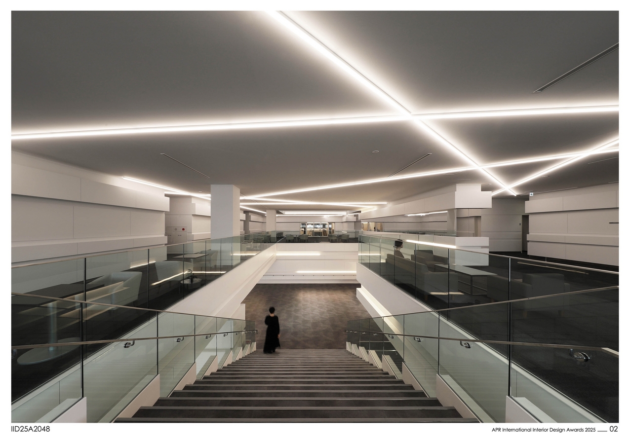 Each floor is organized around an atrium pierced through the center, with natural light from the skylight spreading across each layer. This not only enhances energy efficiency and openness but also stimulates encounters and communication among workers on different floors.