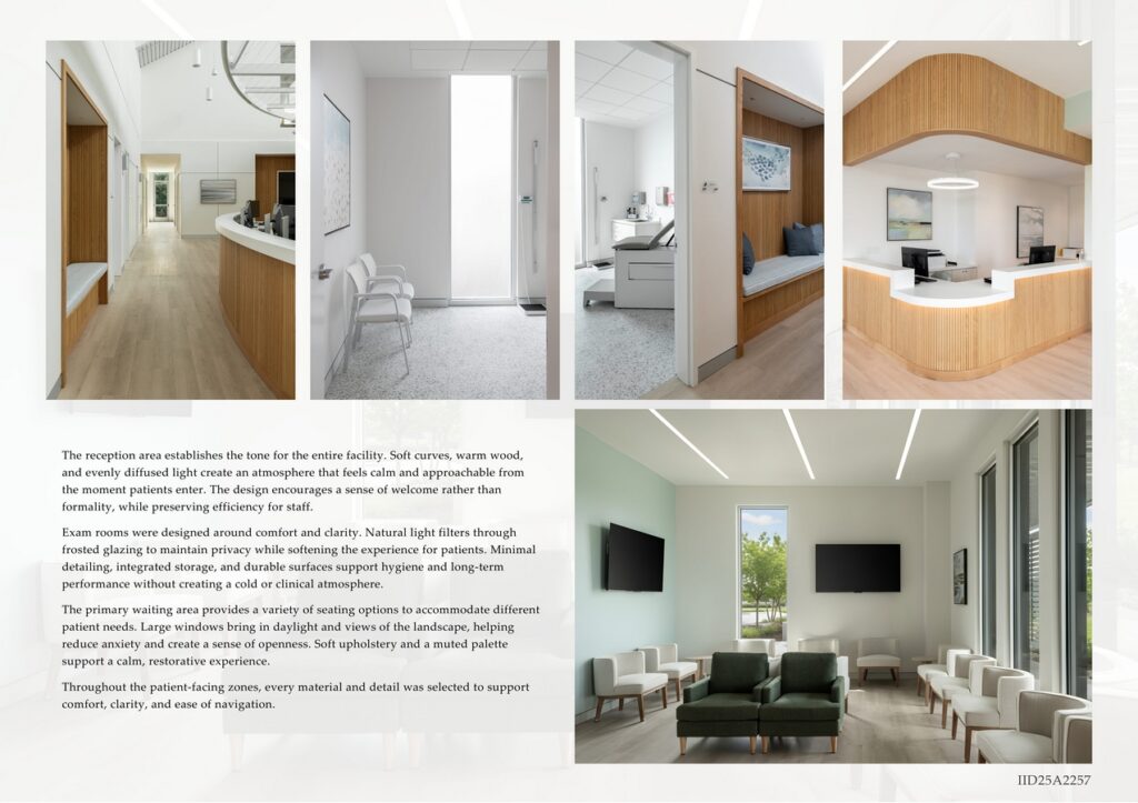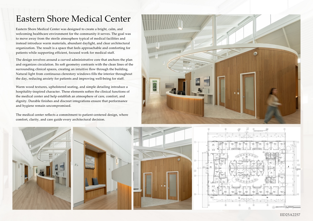 Eastern Shore Medical Center was designed to create a bright, calm, andwelcoming healthcare environment for the community it serves. The goal wasto move away from the sterile atmosphere typical of medical facilities and instead introduce warm materials, abundant daylight, and clear architectural organization. The result is a space that feels approachable and comforting for
