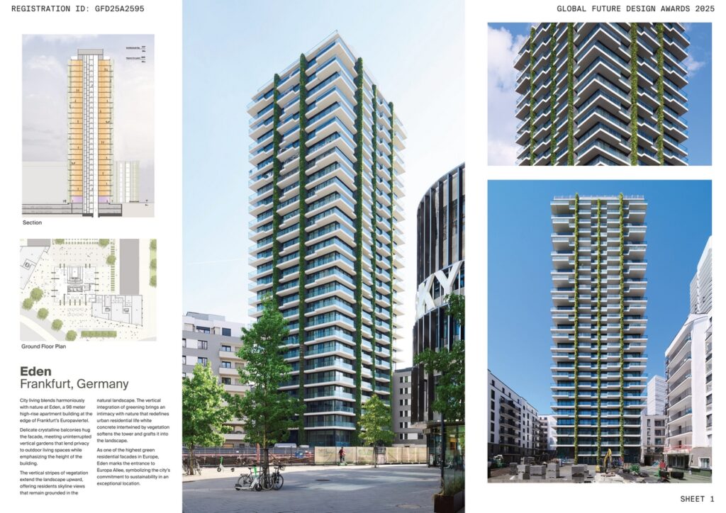 Located in the heart of Frankfurt, Germany, EDEN Tower introduces a new generation of apartments designed for occupant wellness and the evolving needs of a post-COVID lifestyle. With many residents now living and working from home, the design prioritizes natural ventilation, vegetation, and well-being. Rather than following a purely formal architectural concept, the tower’s design is a direct response to these functional considerations.