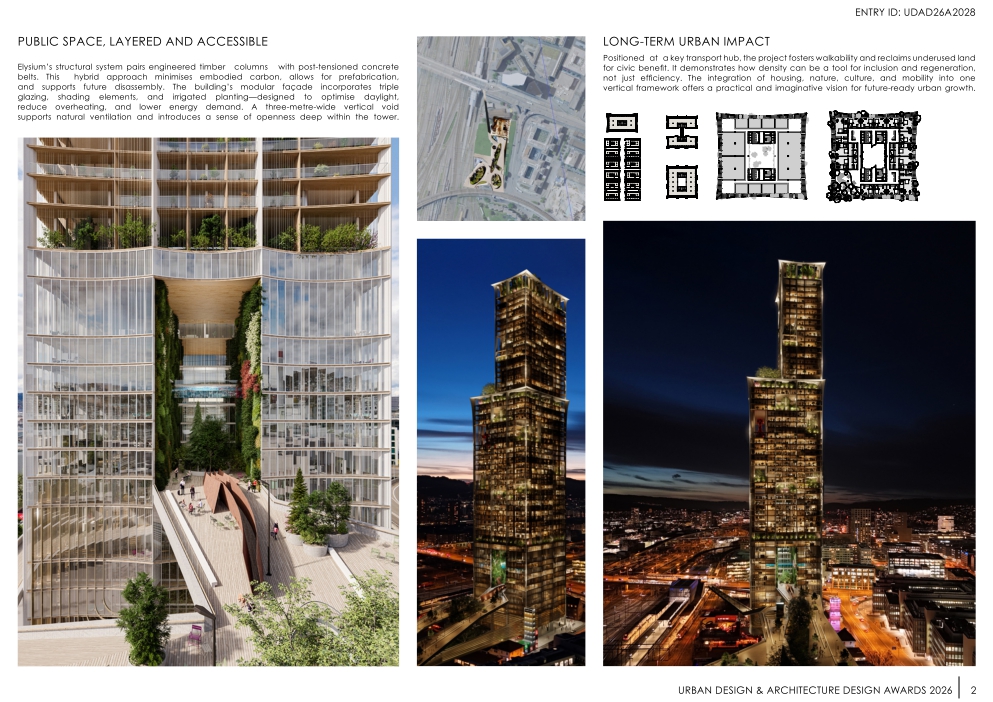 Positioned at a key transport hub, the project fosters walkability and reclaims underused land for civic benefit. It demonstrates how density can be a tool for inclusion and regeneration, not just efficiency. The integration of housing, nature, culture, and mobility into one vertical framework offers a practical and imaginative vision for future-ready urban growth.