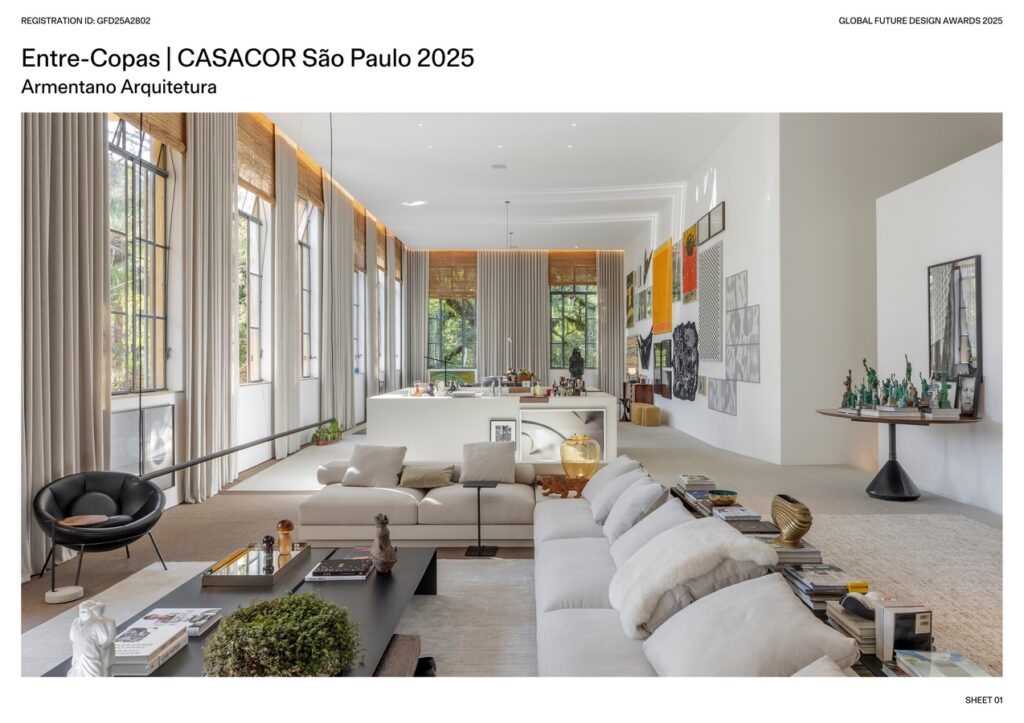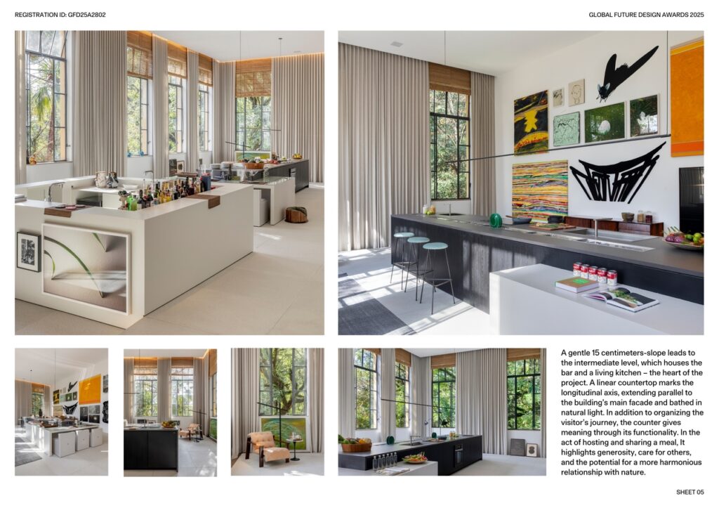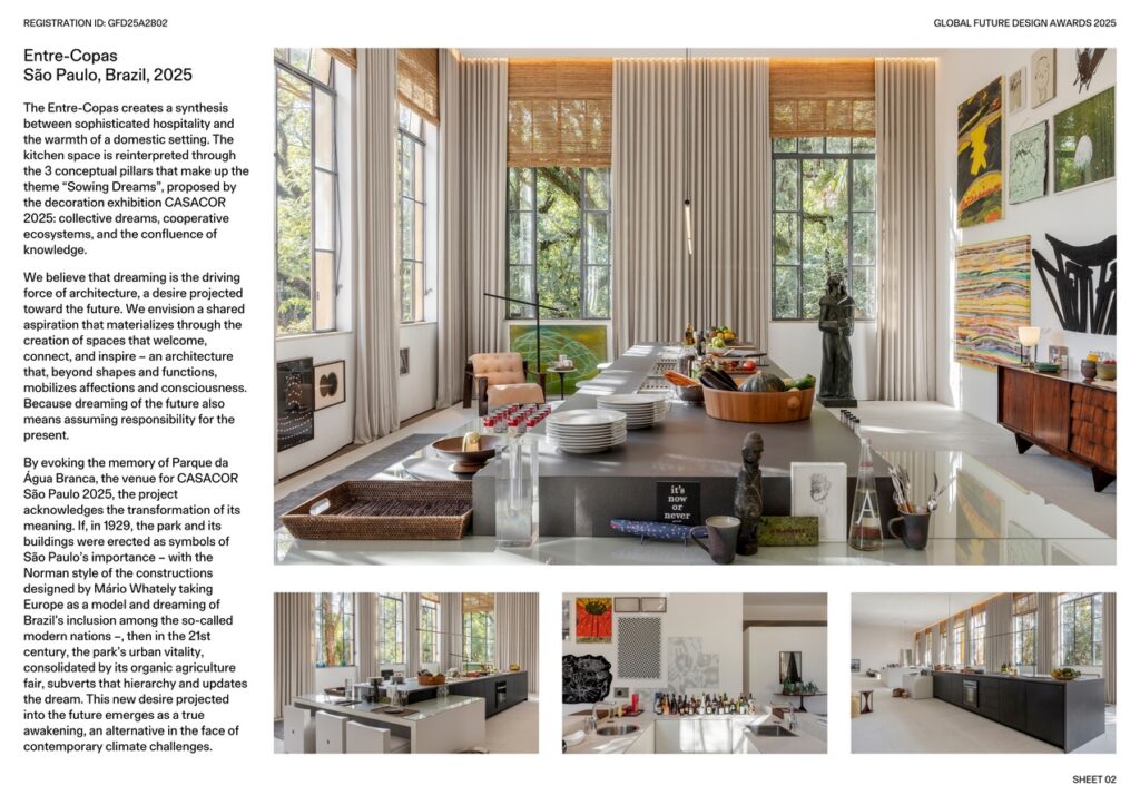 The Entre-Copas creates a synthesis between hospitality and the warmth of a domestic setting. The kitchen is reinterpreted through the 3 conceptual pillars that make up the theme “Sowing Dreams”, proposed by the decoration exhibition CASACOR 2025: ‘collective dreams’, ‘cooperative ecosystems’, and the ‘confluence of knowledge’.