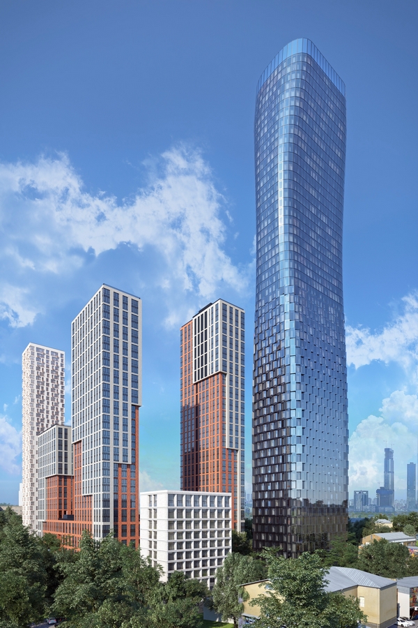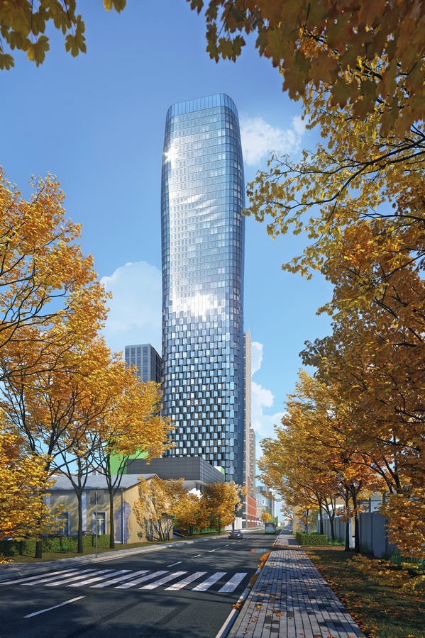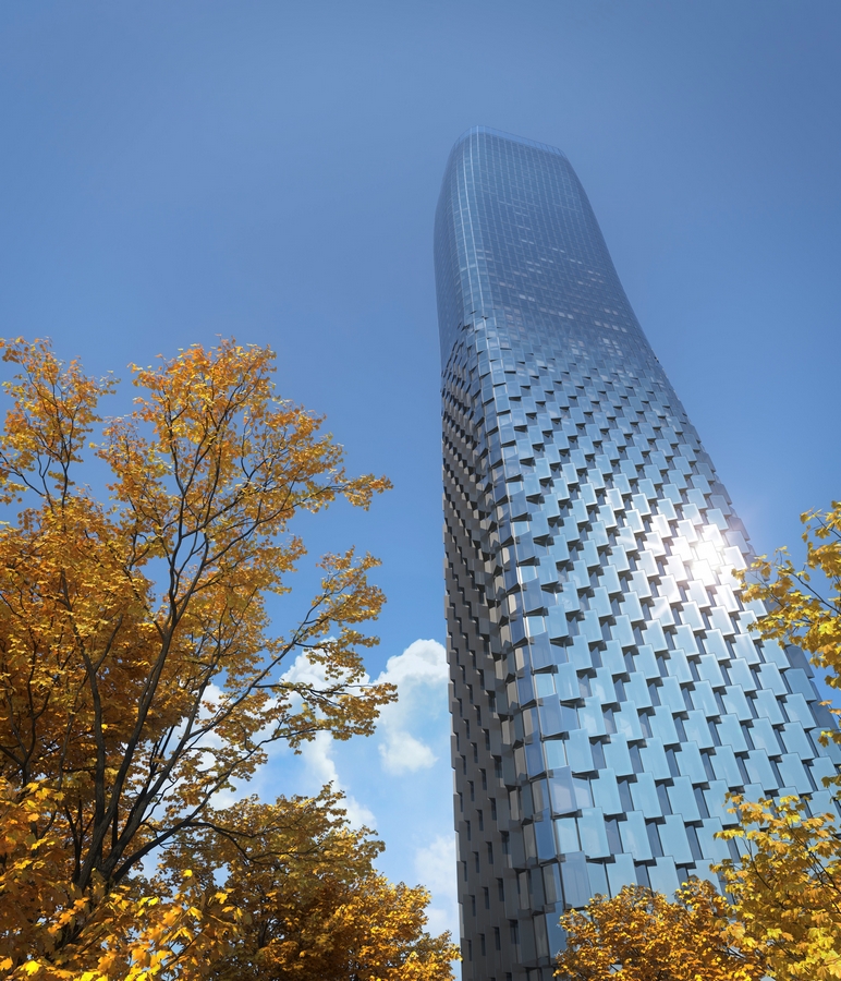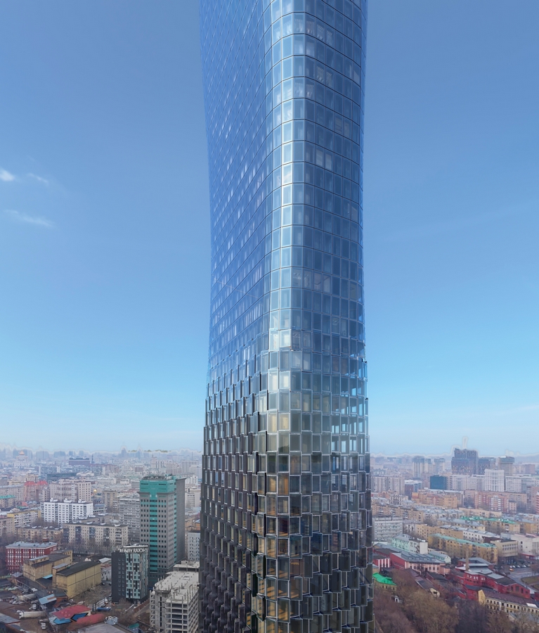 The residential skyscraper with a height of 200 meters has 58 floors. The building has rounded corners and changes the depth of the floor, getting a kind of narrowing in its central part, making the silhouette more accentuated. All its facades are completely glazed, but the tectonic character changes dramatically from the first to the last floor. The lower half of the building received structural glazing, in which each window is a separate cell protruding from the body of the building. The upper half, on the contrary, seems to be wrapped in a single smooth layer of glass. This project is currently under active construction, and for architects it has become an example of an approach to designing skyscrapers as urban sculptures. According to the authors, glass is an ideal material for the facades of such buildings, because due to reflections it creates the sculpture constantly changing its appearance.