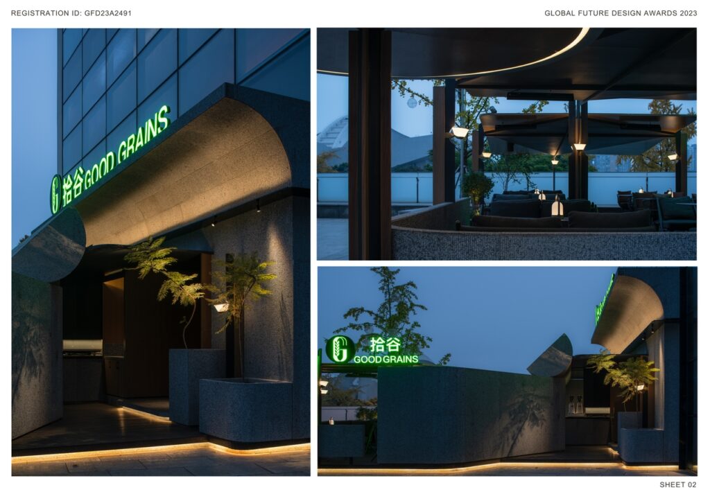 While maintaining the overall architectural style, we highlight the language of good grain. As a result, we use rocks, timber and steel, the most fundamental geological and natural materials, as the dominant essentials for Good Grain Kitchen & Café, so as to emphasize the simple and natural cooking methods of light meals.