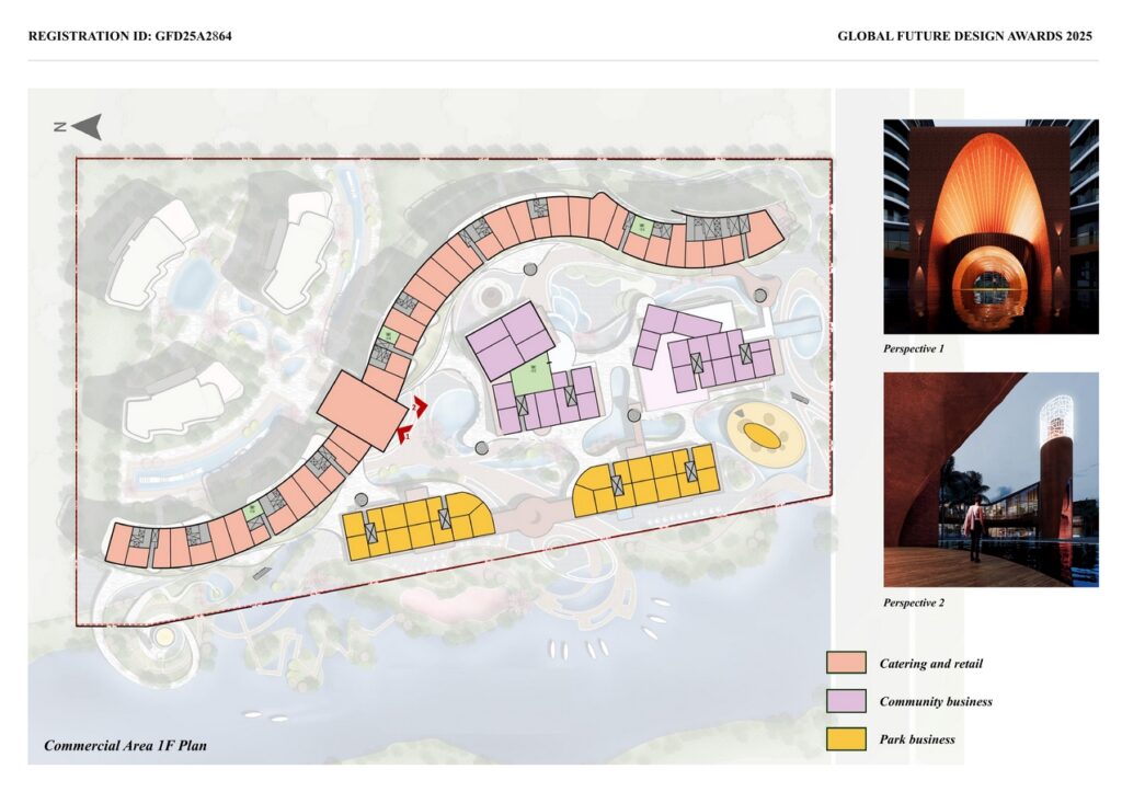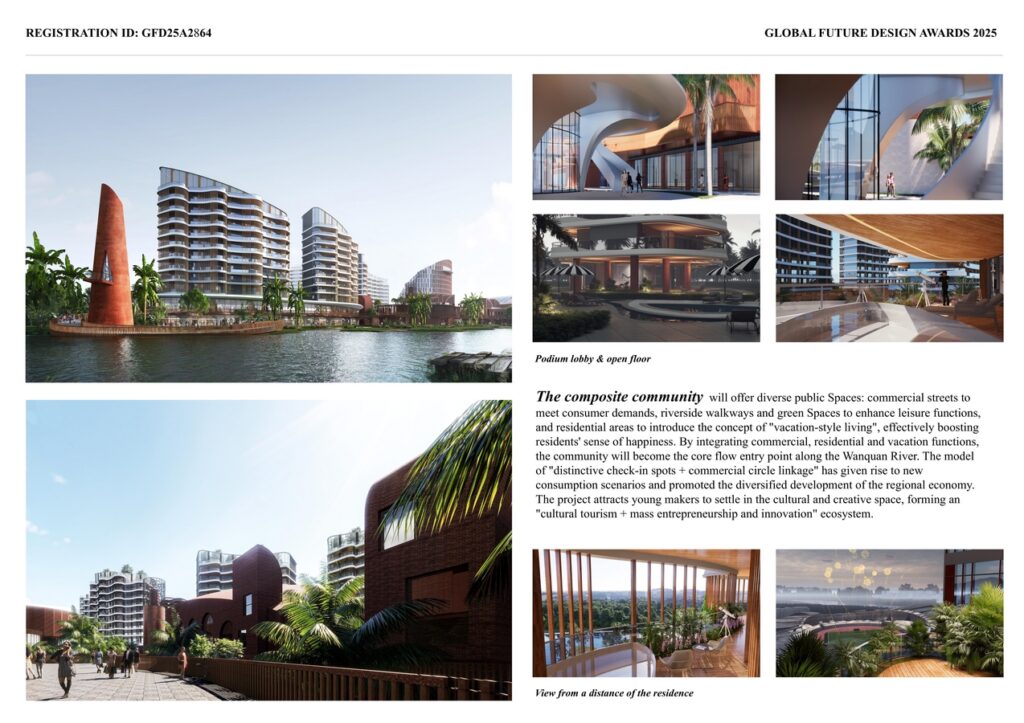 The composite community will offer diverse public Spaces: commercial streets to meet consumer demands, riverside walkways and green Spaces to enhance leisure functions, and residential areas to introduce the concept of “vacation-style living”, effectively boosting residents’ sense of happiness. By integrating commercial, residential and vacation functions, the community will become the core flow entry point along the Wanquan River. The model of “distinctive check-in spots + commercial circle linkage” has given rise to new consumption scenarios and promoted the diversified development of the regional economy. The project attracts young makers to settle in the cultural and creative space, forming an “cultural tourism + mass entrepreneurship and innovation” ecosystem.