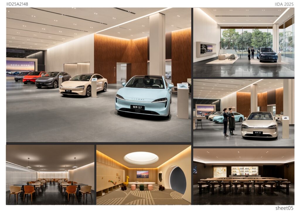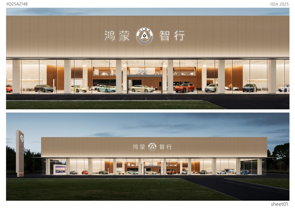 The Project takes “The Realm of Intelligent Mobility, Sensing the Future” as its core design concept, merging technological aesthetics with spatial artistry to create an immersive venue that integrates brand presentation, social experience, and futuristic mobility concepts. The building’s facade adopts a symmetrically organized two-section structure, with an ultra-thin floating canopy that conveys a sense of lightness and advanced technology.