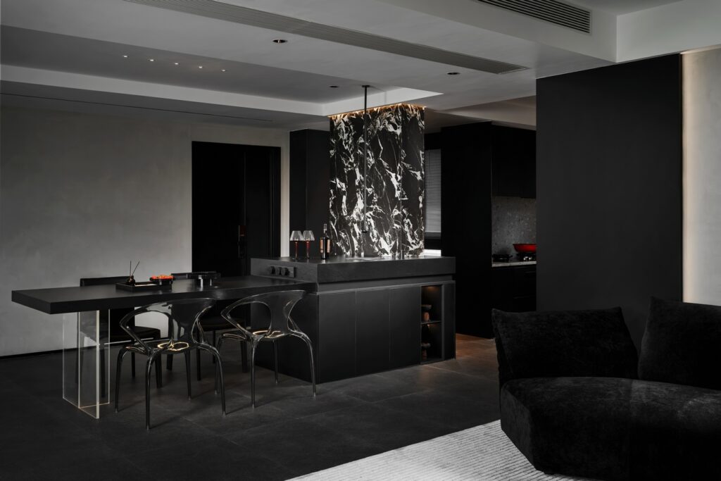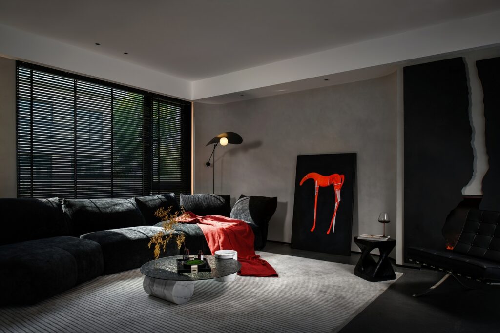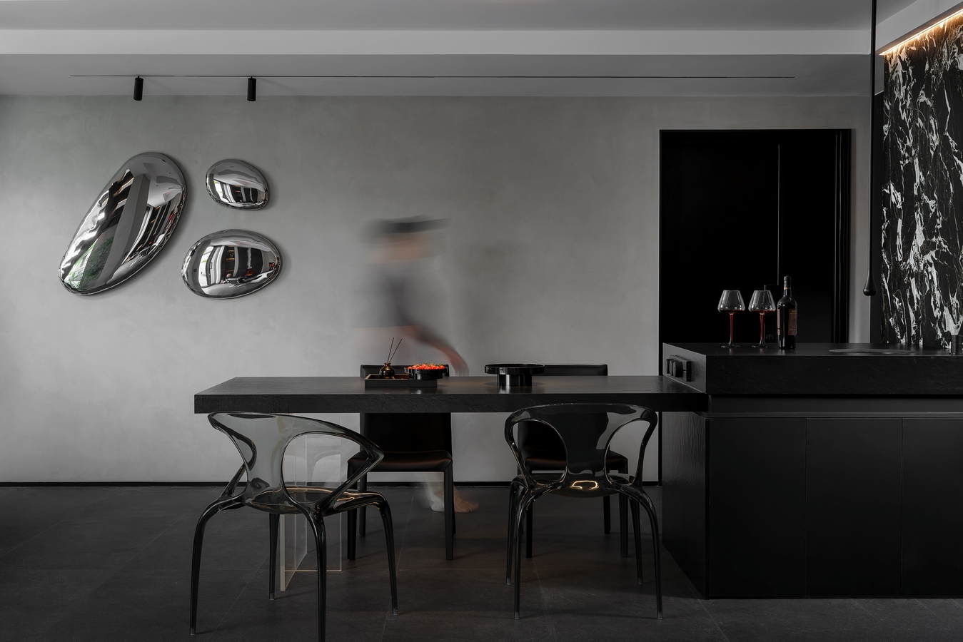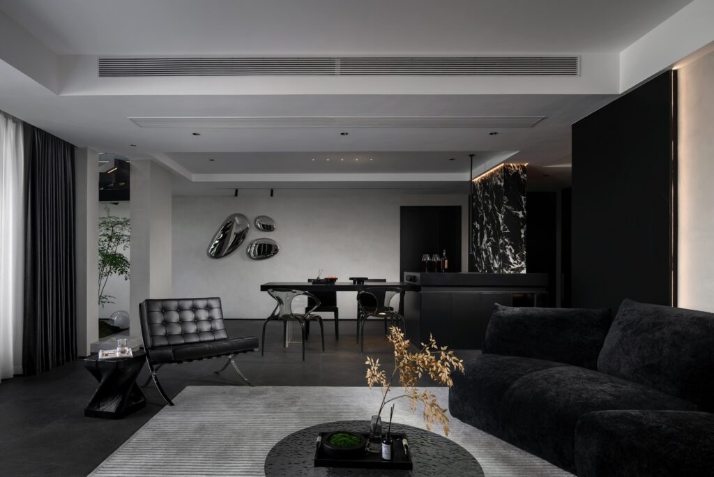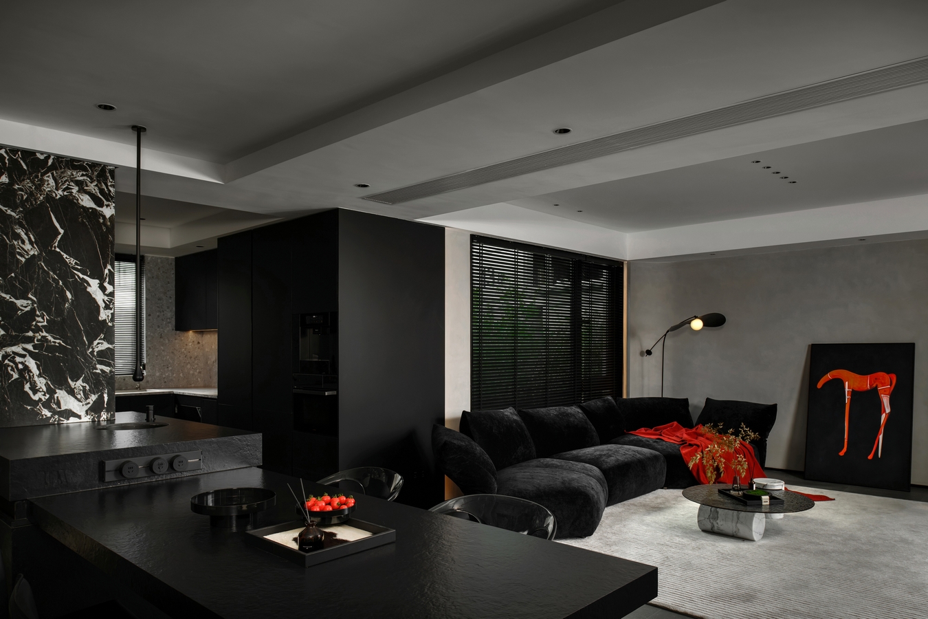 This project is located in Dadukou District, Chongqing, and is a modern dark-style design work. Breaking away from the traditional light-colored “safe card”,Creating a highly personalized space atmosphere.The dark modern style often stems from the unique pursuit of spatial temperament, lifestyle, and aesthetic expression.