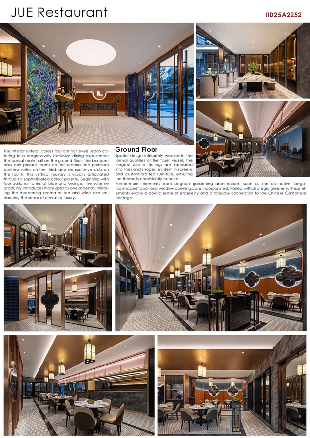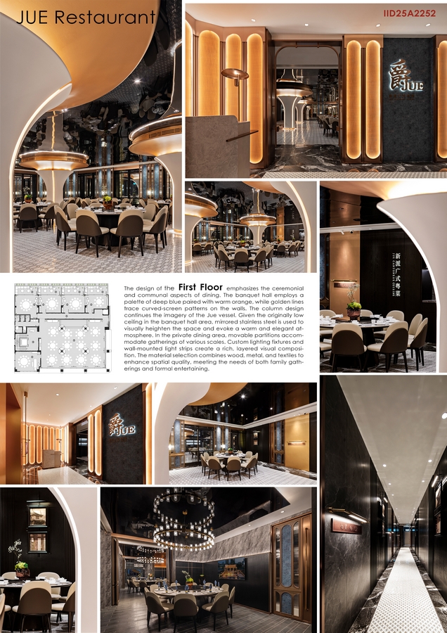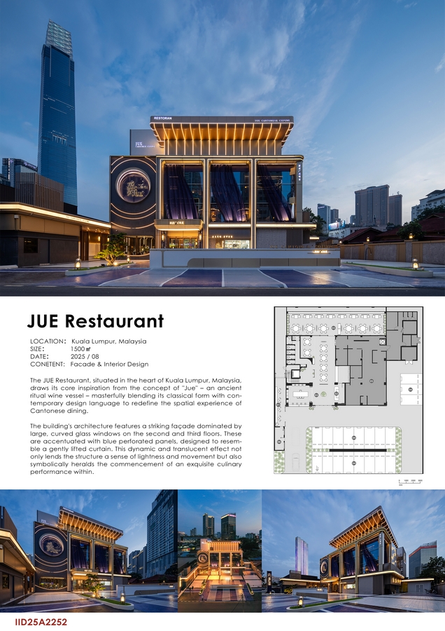 The JUE Restaurant, situated in the heart of Kuala Lumpur, Malaysia, draws its core inspiration from the concept of “Jue” – an ancient ritual wine vessel – masterfully blending its classical form with contemporary design language to redefine the spatial experience of Cantonese dining.