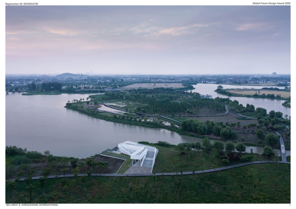 The site is situated in the center of Lianhuadang Lake in Yixing City. The surrounding area features a distinctive lotus landscape with a wide view and an abundance of aquatic plants. The tourist center supports responding to the surrounding environment by creating a variety of perception of experiences.