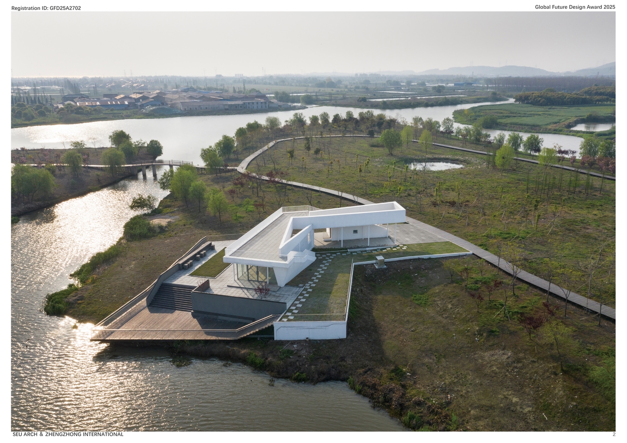 The site is situated in the center of Lianhuadang Lake in Yixing City. The surrounding area features a distinctive lotus landscape with a wide view and an abundance of aquatic plants. The tourist center supports responding to the surrounding environment by creating a variety of perception of experiences.