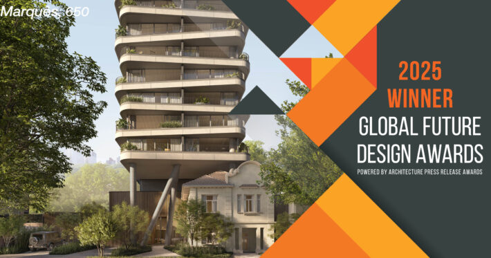 Located in Porto Alegre’s Moinhos de Vento district—an urban fabric marked by tree-lined streets and layered architectural history—Marquês 650 emerges as an urban intervention that intertwines memory and contemporaneity. At the heart of the site stands a preserved historic house, not treated as a relic but as a catalyst for the project’s narrative. Around this element, the new building is carefully composed, fostering a dialogue between permanence and transformation that becomes central to its identity.