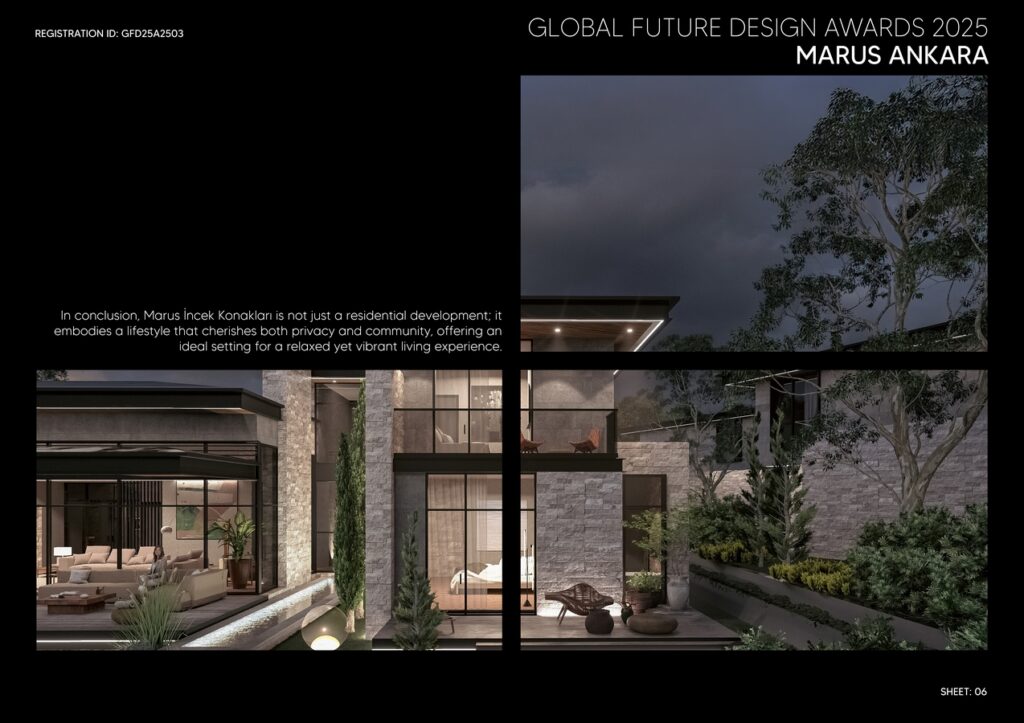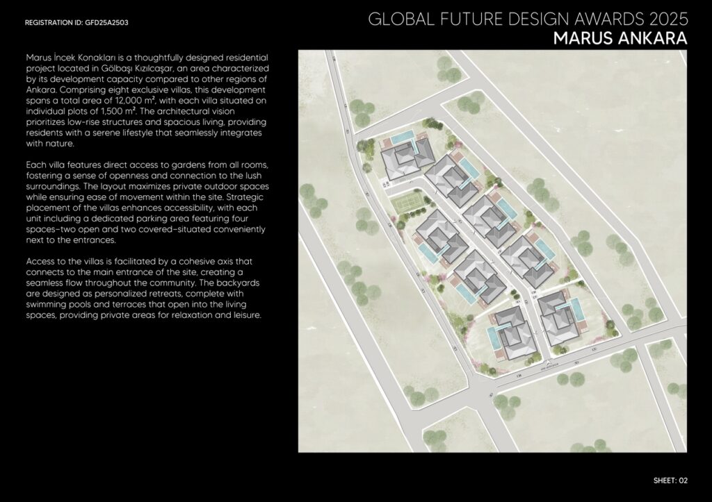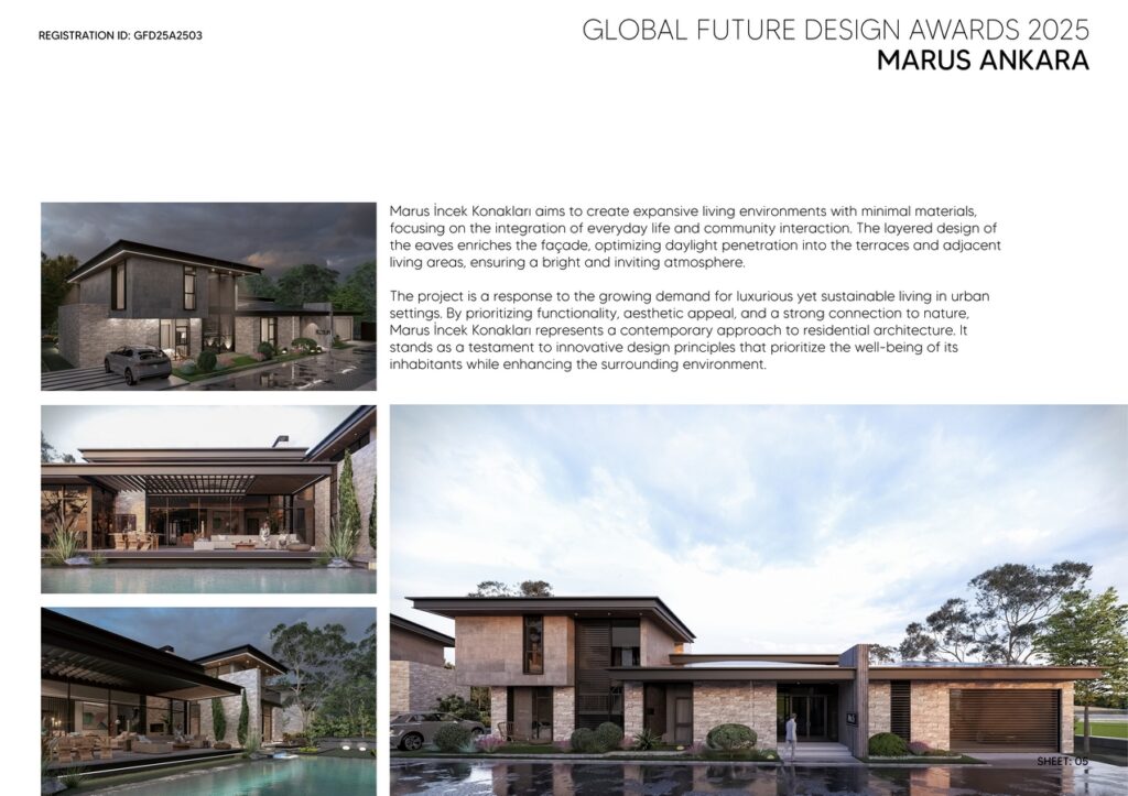 The project is a response to the growing demand for luxurious yet sustainable living in urban settings. By prioritizing functionality, aesthetic appeal, and a strong connection to nature, Marus İncek Konakları represents a contemporary approach to residential architecture. It stands as a testament to innovative design principles that prioritize the well-being of its inhabitants while enhancing the surrounding environment. In conclusion, Marus İncek Konakları is not just a residential development; it embodies a lifestyle that cherishes both privacy and community, offering an ideal setting for a relaxed yet vibrant living experience.