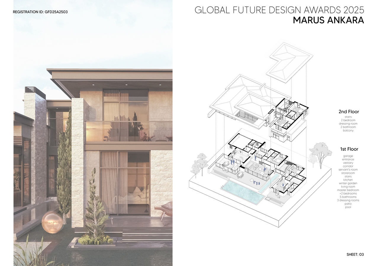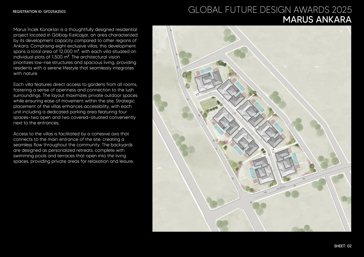 The project is a response to the growing demand for luxurious yet sustainable living in urban settings. By prioritizing functionality, aesthetic appeal, and a strong connection to nature, Marus İncek Konakları represents a contemporary approach to residential architecture. It stands as a testament to innovative design principles that prioritize the well-being of its inhabitants while enhancing the surrounding environment. In conclusion, Marus İncek Konakları is not just a residential development; it embodies a lifestyle that cherishes both privacy and community, offering an ideal setting for a relaxed yet vibrant living experience.