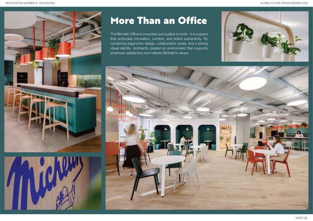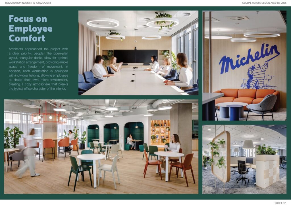 More Than an Office The Michelin Office is more than just a place to work – it is a space that embodies innovation, comfort, and brand authenticity. By combining ergonomic design, collaborative zones, and a strong visual identity. Architects created an environment that supports employee satisfaction and reflects Michelin’s values.