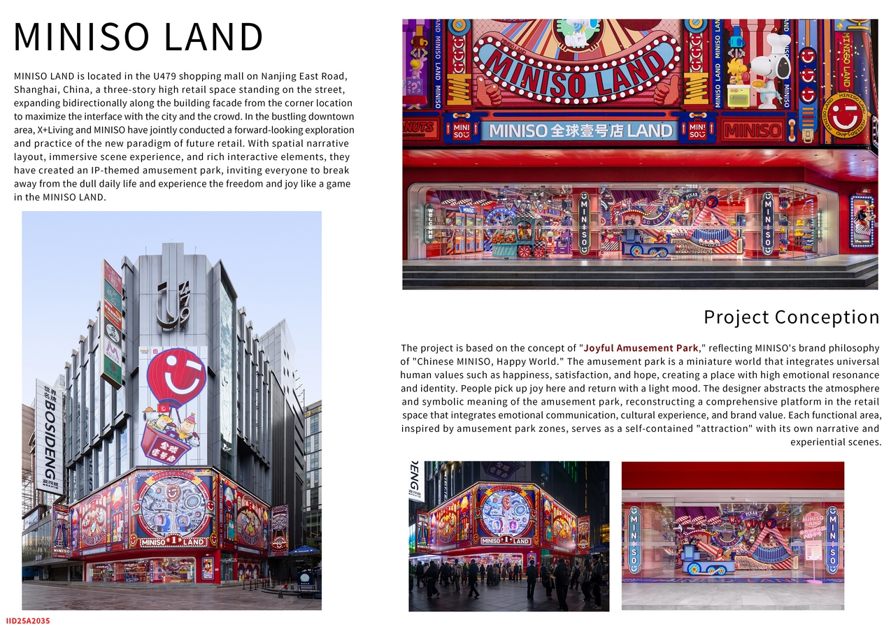Located in the U479 shopping mall on Nanjing East Road, Shanghai, the three-story MINISO LAND Global Flagship Store redefines the future of retail through a visionary integration of spatial storytelling, immersive experiences, and interactive engagement. Positioned at a bustling urban intersection, the store’s bidirectional facade maximizes its interface with the city, transforming conventional retail into a dynamic IP-themed amusement park that invites visitors to escape the mundane and embrace playful exploration.