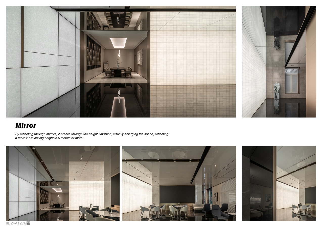 By reflecting through mirrors, it breaks through the height limitation, visually enlarging the space, reflecting a mere 2.5M ceiling height to 5 meters or more.