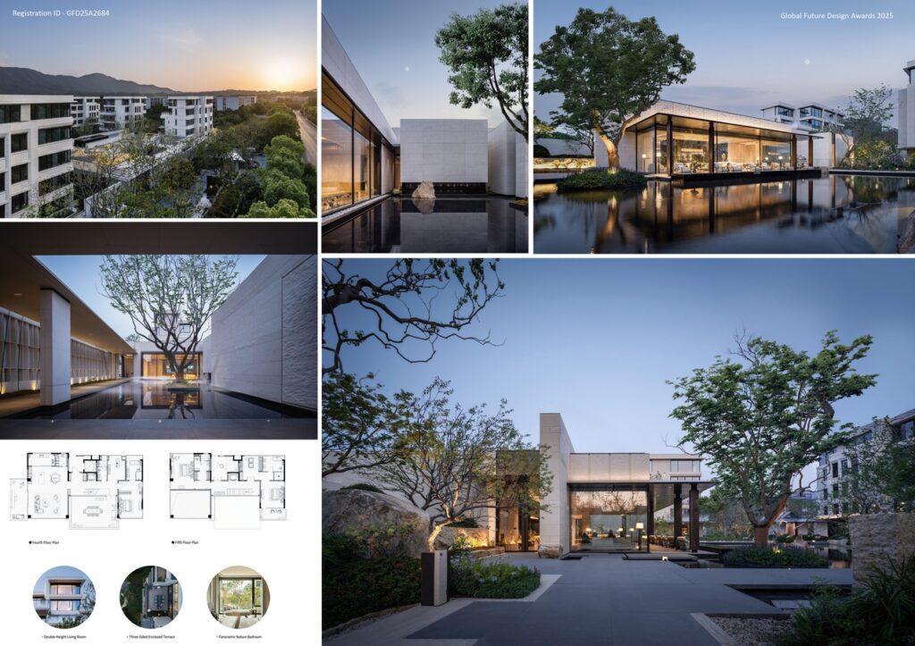 The core concept of the project is “the coexistence of order and freedom”.The north sector leverages adjacent urban green space to introduce a discreetly luxurious hotel-style arrival plaza. This initiates a spatial sequence connecting the drop-off courtyard, subterranean clubhouse, central water courtyard, and elevated podium structure, forming a seamless three-dimensional narrative. In the south sector, capitalizing on the site’s natural topography, the Mountain View Pavilion integrates the mountain landscape through horizontally extended viewing corridors and tiered terraces, effectively drawing the mountain into the garden.