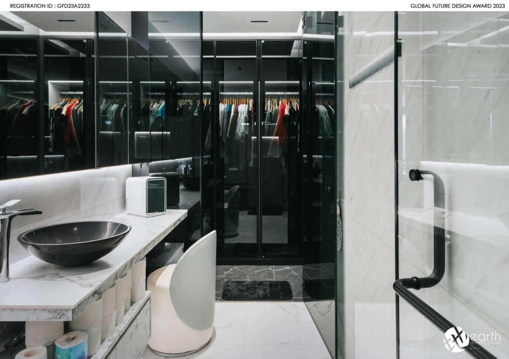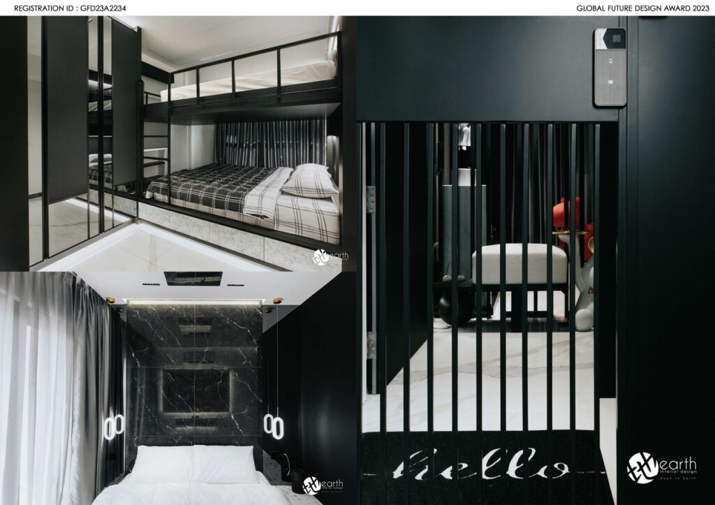 The bedrooms are designed simply and modernly with black marble finish and track lighting. Clean and elegant look, with functional storage spaces to keep living space clutter-free. Bunk beds were featured in the kids room, with playful lighting to add colour to the children’s private space.