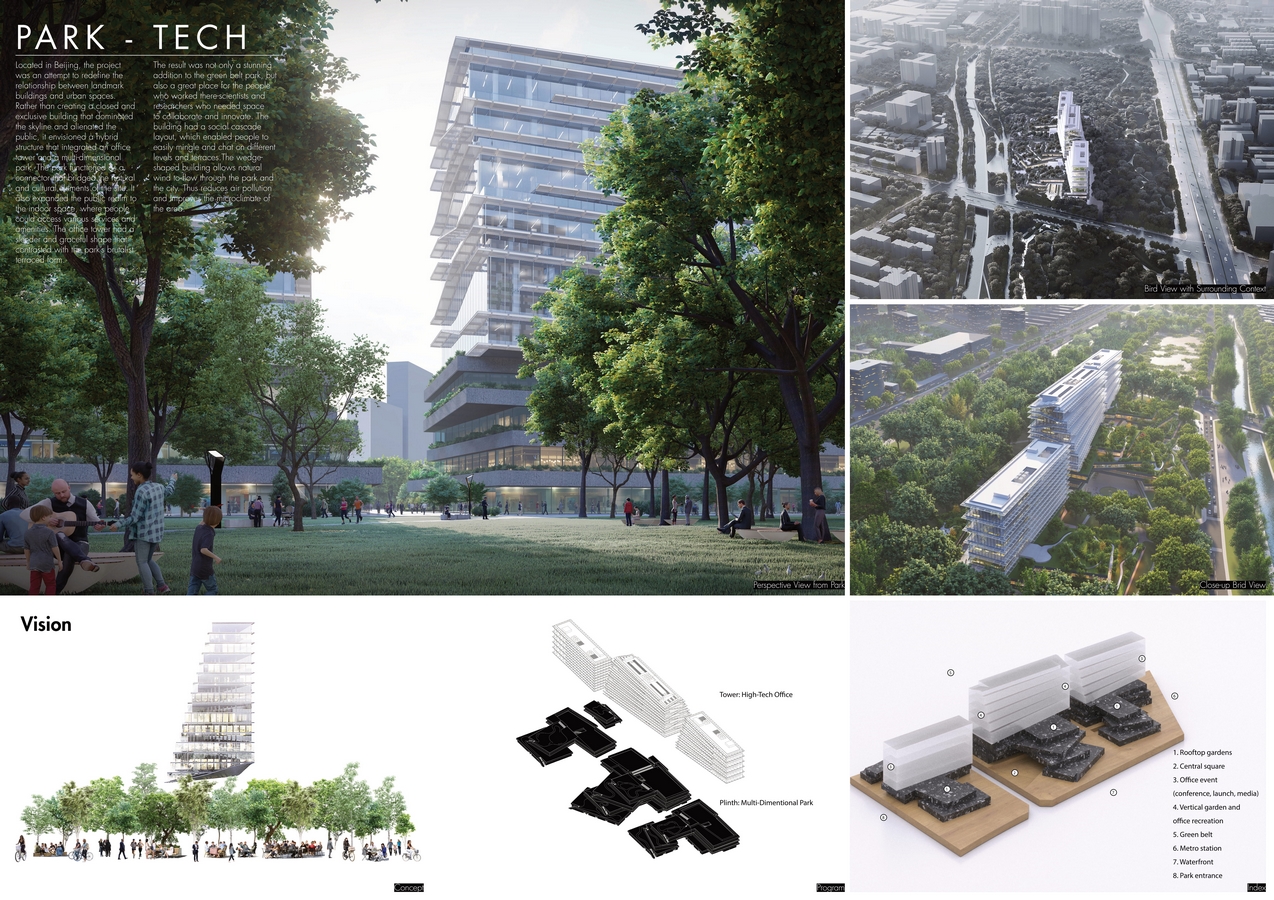 The design ethos dispenses with the traditional dichotomy of exclusive, self-contained constructions. Instead, it heralds a novel era where an office tower coexists symbiotically with a multi-dimensional “park”. This hybrid concept not only augments the city’s architectural identity but fundamentally reimagines its functionality and environmental impact.