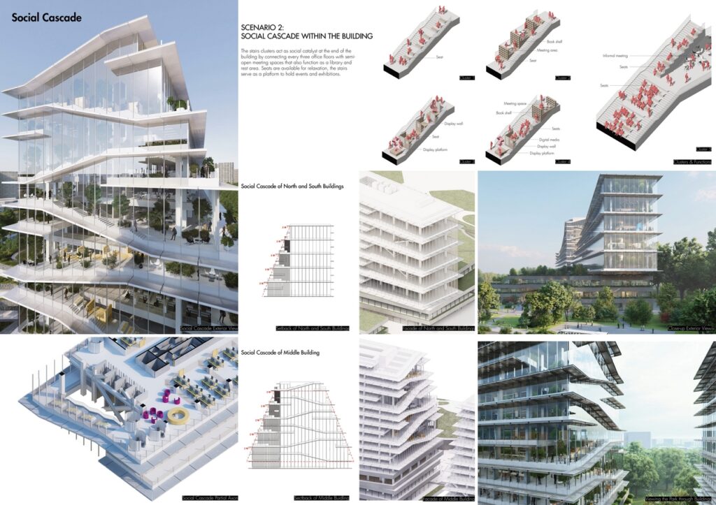 The slim and graceful office tower, set in stark contrast to the rugged, terraced form of the park, encapsulates both aesthetic distinction and an ergonomic workspace. It caters to the distinct needs of contemporary scientists and researchers, fostering a collaborative milieu. The building’s cascade layout, oriented toward social interaction, stimulates dynamic discourse and creative synergy.