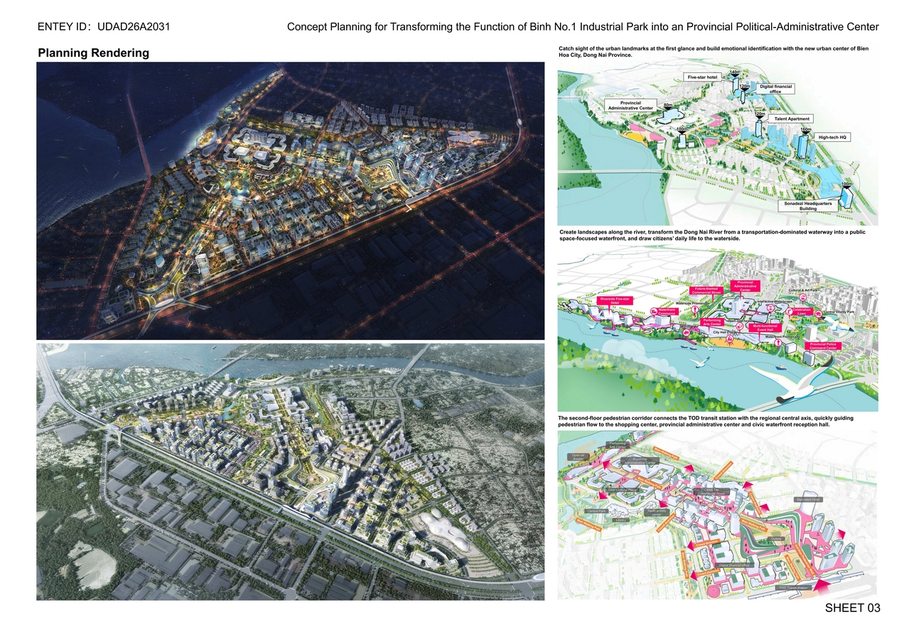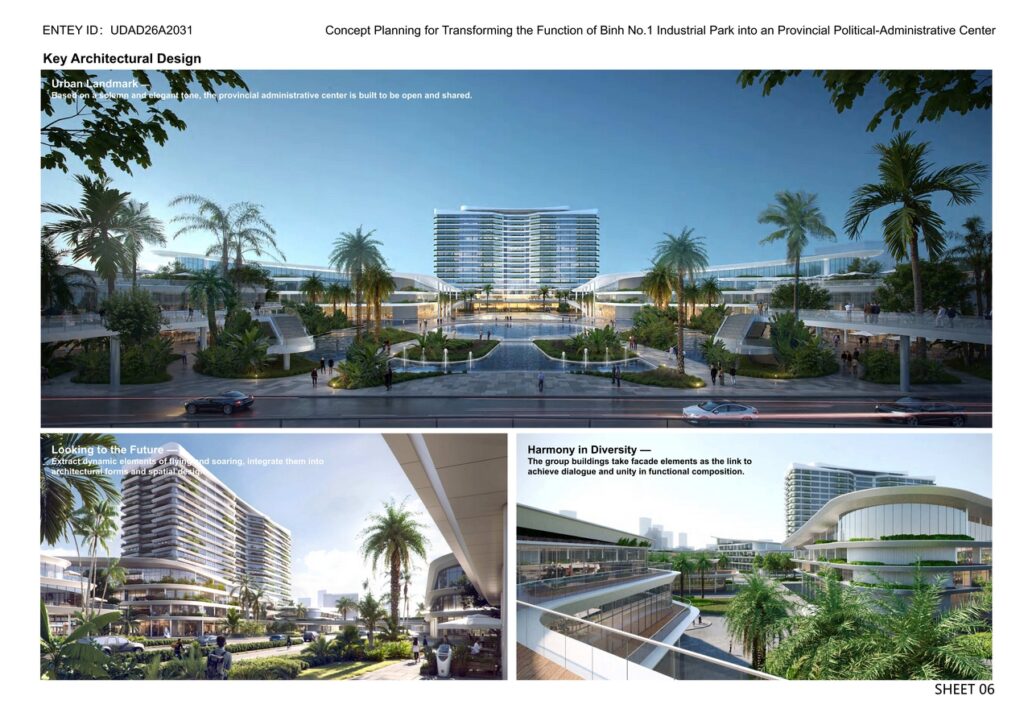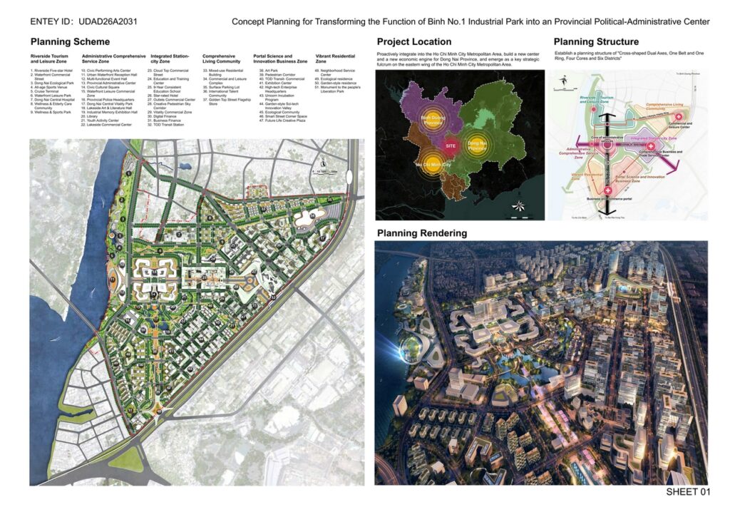 Against the backdrop of the networked restructuring of global metropolitan areas, Bien Hoa Industrial Park, located at the southeastern gateway of Ho Chi Minh City and the core of Dong Nai Province, undertakes a pivotal mission to evolve from an industrial zone into a metropolitan comprehensive service center driven by administrative services. The proposal explores transforming provincial governance functions, public services and civic activities into a core engine for attracting high-end producer services, creating a high-quality urban environment and advancing the regional integration of Ho Chi Minh City and Dong Nai Province, thereby providing a demonstrative case for “converting government functions into an engine for urban development”.
