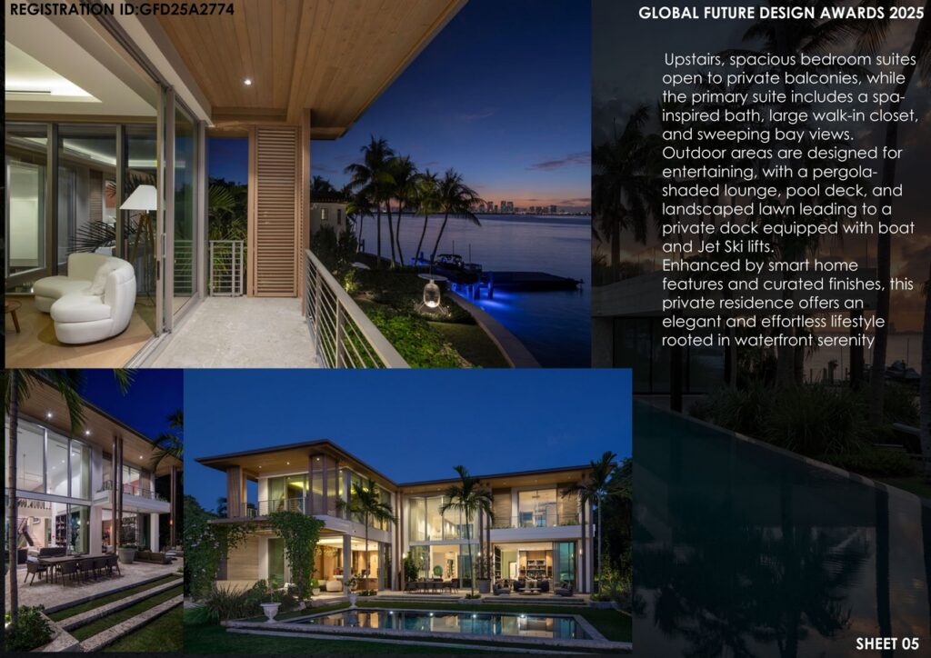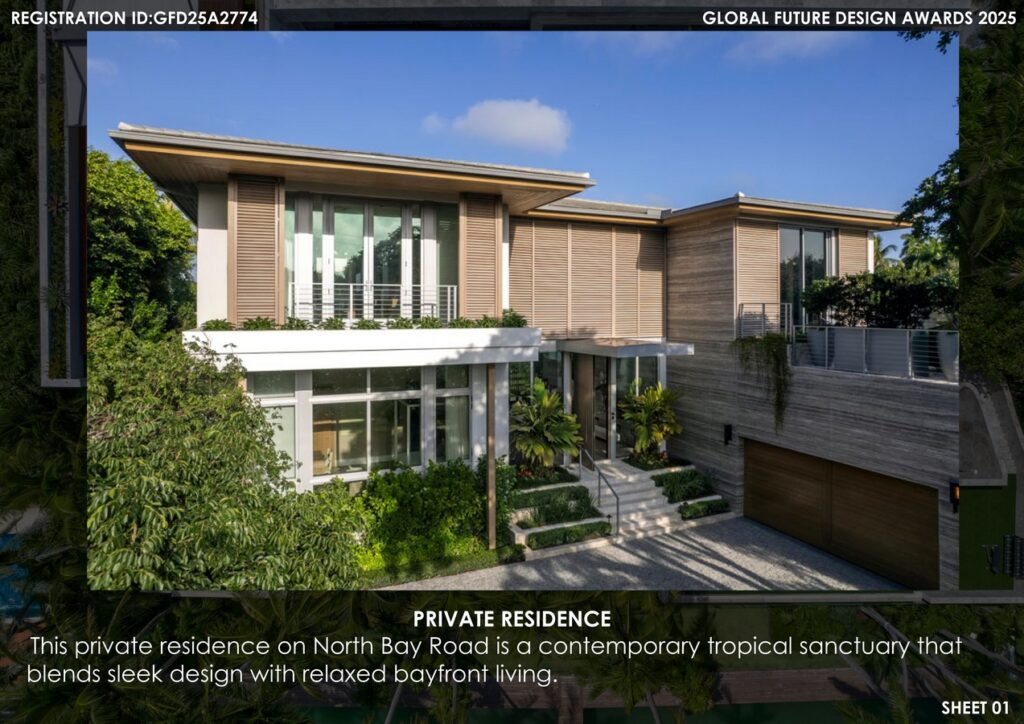 This private residence on North Bay Road is a contemporary tropical sanctuary that blends sleek design with relaxed bayfront living.