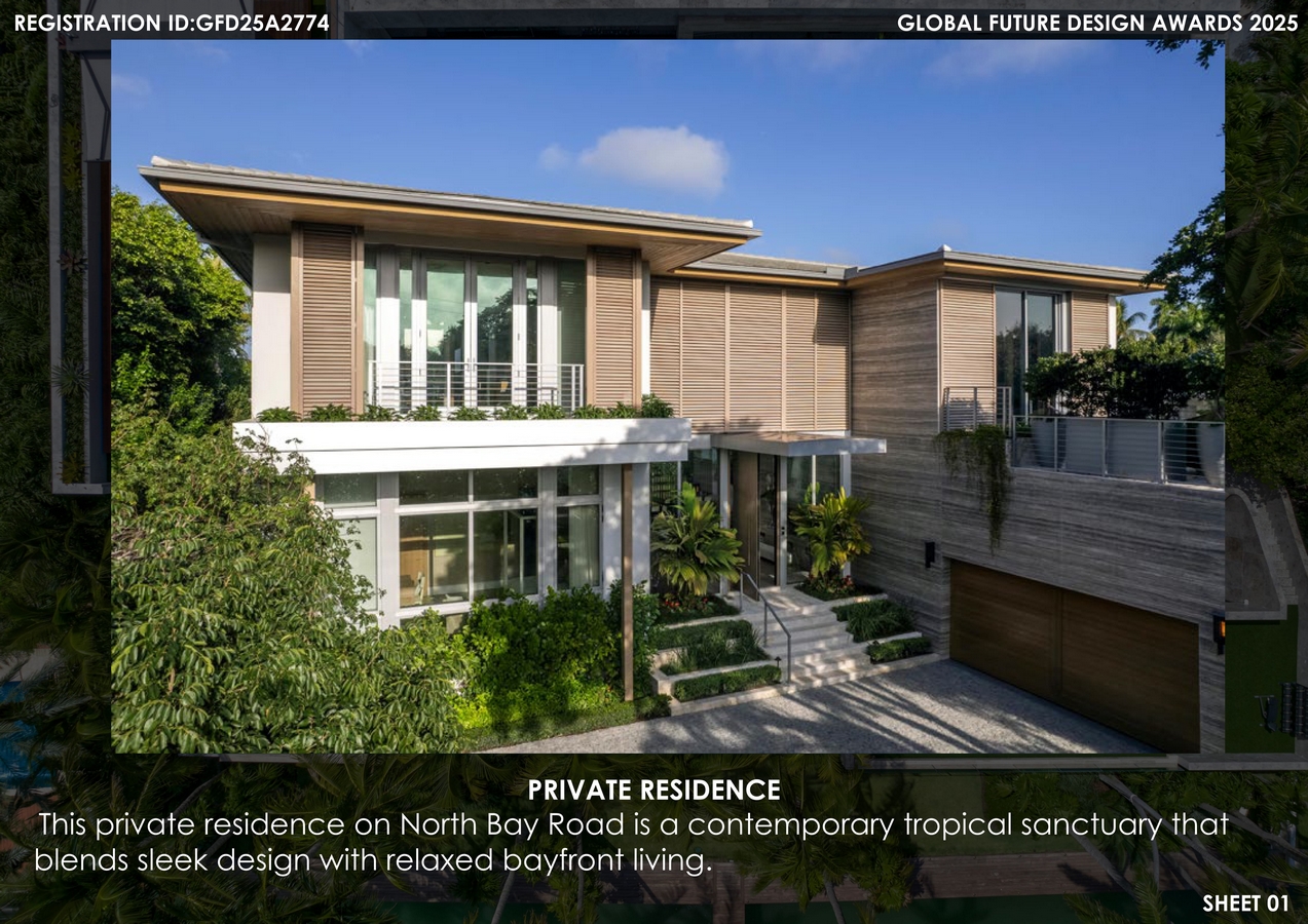 This private residence on North Bay Road is a contemporary tropical sanctuary that blends sleek design with relaxed bayfront living.