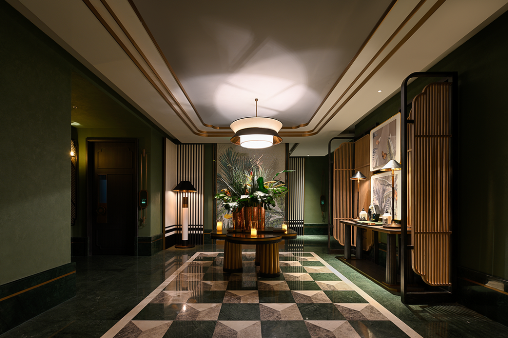 S5design created an immersive modern resort space for Qingtai Foot spa store located in Wuxi, which is hidden in the wild and hidden in the city. A number of natural green plant “gardens” are placed in the place, and the overall space is dominated by Nanyang green, and it combines European classical sophistication, Southeast Asian enthusiasm and Chinese culture to create a unique Nanyang style. Customized art installations, brilliant lighting design and the perfect fit of the space, shocking the vision through the appearance of graphics, narrating the abundance and dynamics of this space.