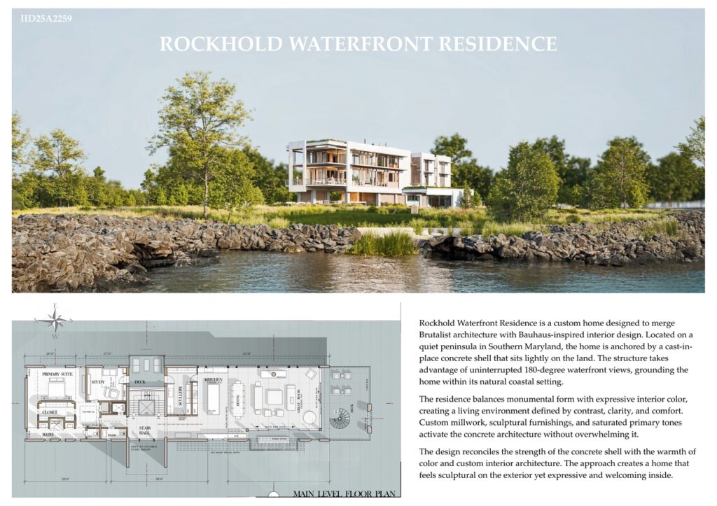 The home is sited on a quiet peninsula along the Chesapeake Bay, elevated gracefully on piles so that the structure appears to hover above its natural surroundings. The Brutalist shell, meticulously scaled and cast, anchors the building with a sense of permanence and raw integrity. This envelope becomes the stage upon which the Bauhaus interior unfolds.