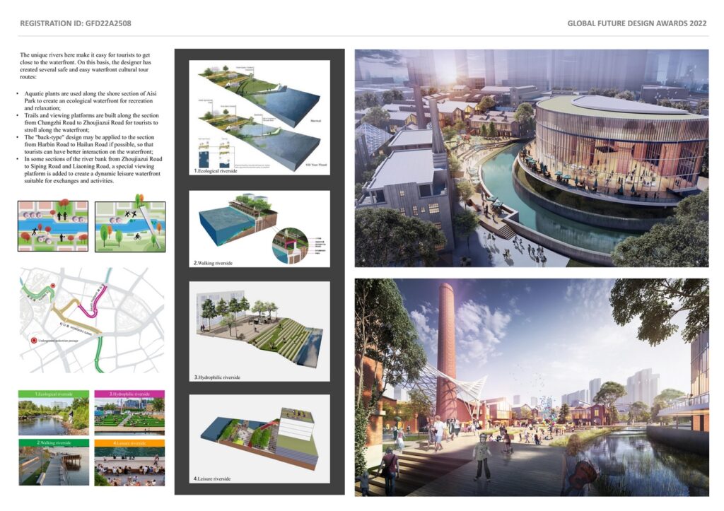 In order to retain and make good use of the colorful community life, the designer abandoned the traditional renewal idea of large-scale demolition and construction. Instead, the historical features of Hongkou lanes are preserved and diverse amenities are added to create an all-weather art and leisure community. Various streetscape management measures, such as upgraded facilities, buried pipelines and open-air businesses along the north-south Harbin Road style commercial street and the east-west commercial street along the Binhe River, have created a cultural atmosphere, giving more pedestrian space to tourists and residents.