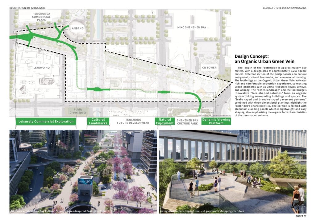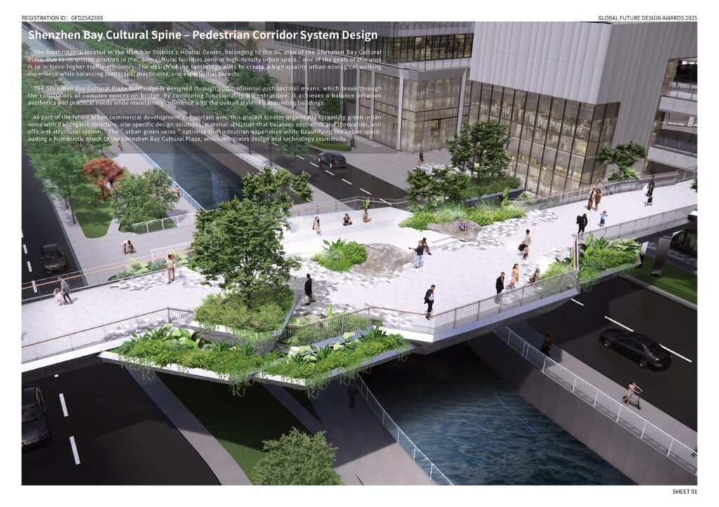 is to achieve higher traffic efficiency. The design of the footbridge aims to create a high-quality urban-ecological walking