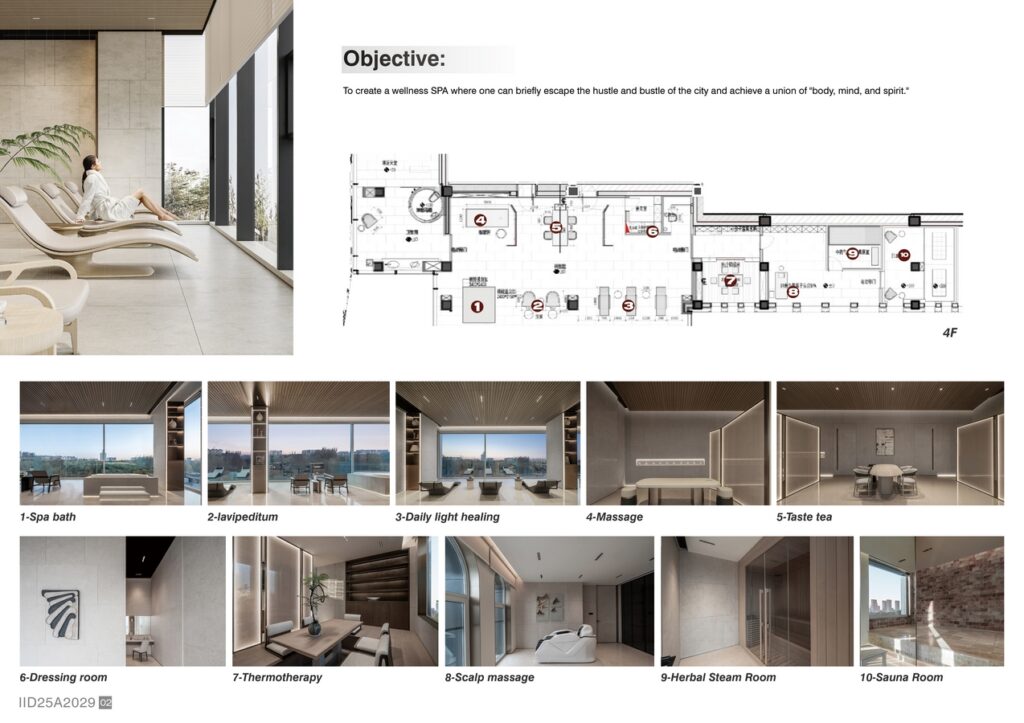 2.Objective: To create a wellness SPA where one can briefly escape the hustle and bustle of the city and achieve a union of “body, mind, and spirit.”
