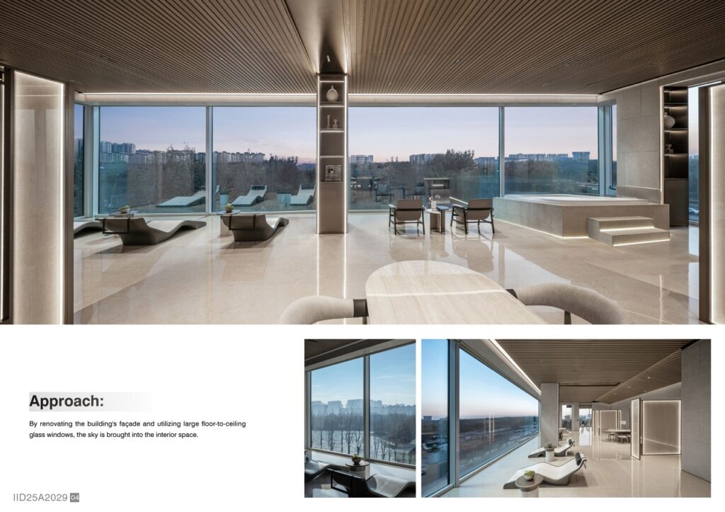 3.Approach: By renovating the building’s façade and utilizing large floor-to-ceiling glass windows, the sky is brought into the interior space.