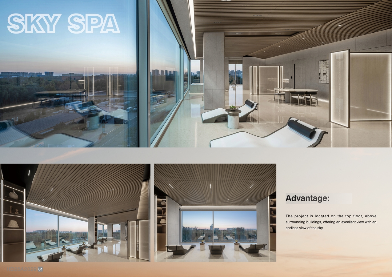 Transforming the top-floor open space into a wellness SPA provides an escape from urban noise and achieves harmony of body and mind. The design concept includes “Blue Sky,” where large floor-to-ceiling windows bring in the sky landscape, deepening the connection with nature; and “Flow of Chi,” using an open layout and large windows to promote air circulation, enhancing the vitality of the space. Such a transformation leverages the geographical advantage to create an ideal environment for relaxation and wellness, helping people find peace of mind.