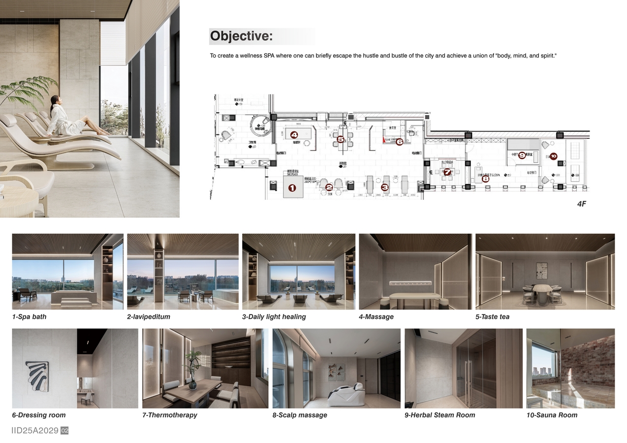 2.Objective: To create a wellness SPA where one can briefly escape the hustle and bustle of the city and achieve a union of “body, mind, and spirit.”