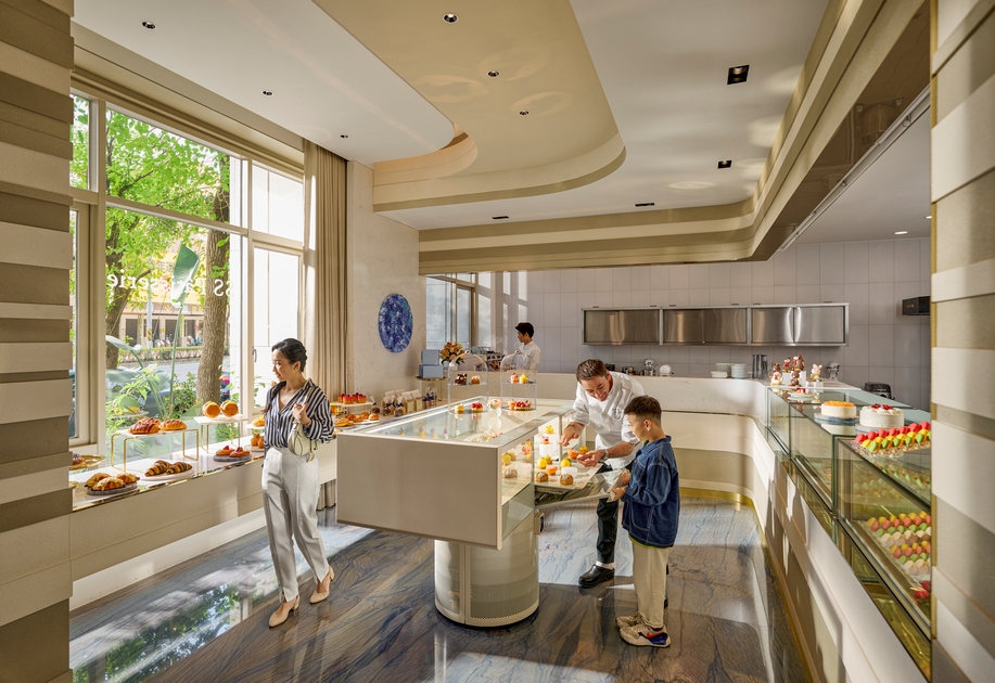 SS Pâtisserie. offers a healing experience for guests in search of the ultimate mental relaxation. The space features a seaside cave of rocks, as a metaphor of stepping into bountiful treasure. If the consumers would like to gain access to and experience such wonder, just begin from choosing their favorite piece of dessert. In terms of space, it is divided into two distinct areas: the desserts display area with open kitchen, and the dining area, shaped like a gift box, waiting for the guests to explore each dish with surprise. To create a refreshing atmosphere, we have incorporated elements of freshness into the design of the space, including shapes, colours, tones, materials, and textures, which all contribute to the enjoyment of an enjoyable break from the hectic pace of everyday life.