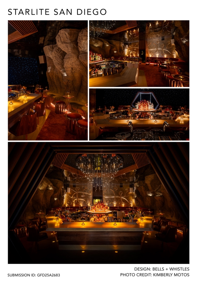 Originally designed by B+W in 2007, Starlite was a design/build project hand-built by the firm’s principals. A steakhouse lounge that harkened back to the rat pack days of the 1950s, that drew inspiration from many influences including John Lautner, stalactites at Carlsbad Caverns, Star Wars, 1970s Italian Futurism, Hitchcock’s North by Northwest, and more. 16 years later, B+W took their original ideas to another level of grandeur for the redesign of this iconic bar.
