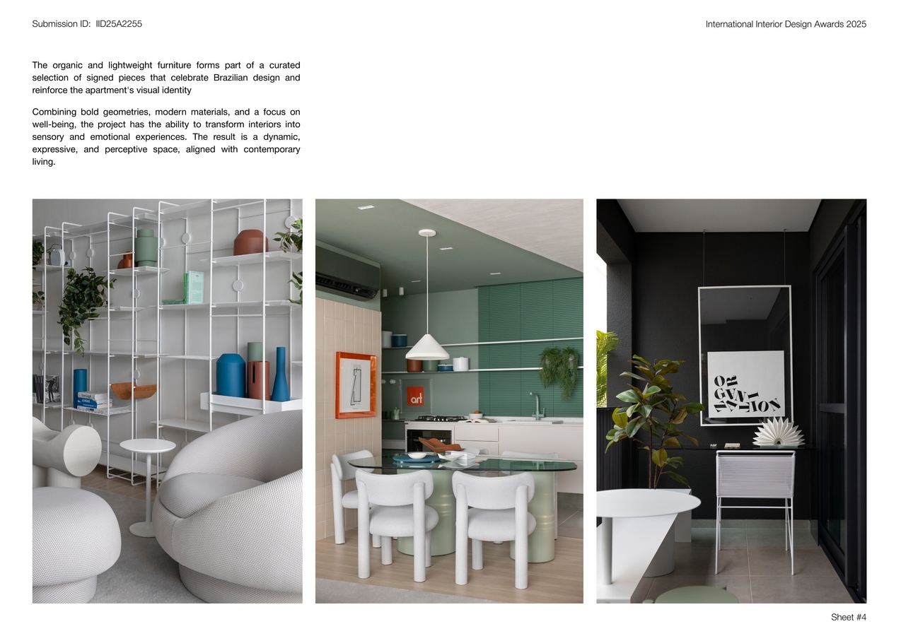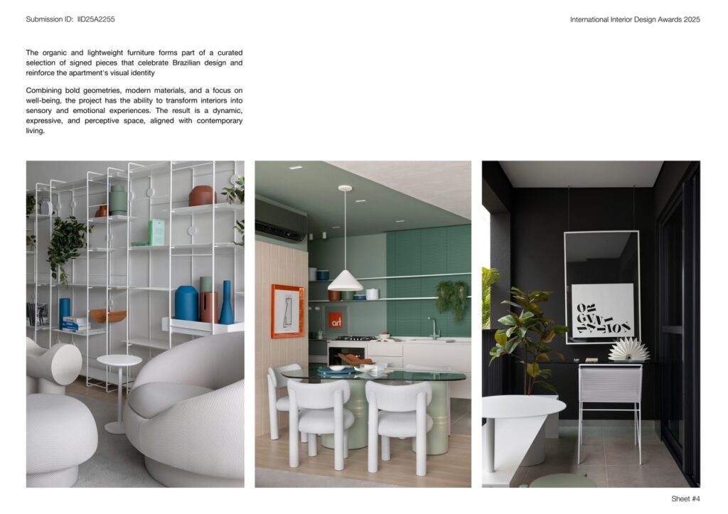 Combining bold geometries, modern materials, and a focus on well-being, the project has the ability to transform interiors into sensory and emotional experiences. The result is a dynamic, expressive, and perceptive space, aligned with contemporary living.